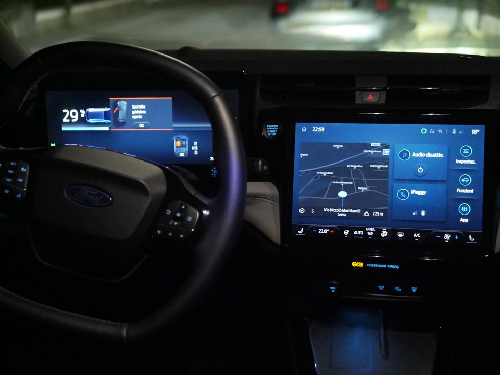 I tasti fisici sono ridotti al lumicino: ce ne sono soltanto quattro, il più utilizzabile è quello delle frecce d’emergenza. Per il resto, ci si deve affidare al grande display touch da 12 pollici centrale che non è immediatamente intuitivo: per trovare i vari comandi, ci si deve distrarre un po’ troppo dalla guida. Scomoda anche la manopola per la gestione delle luci: troppo nascosta dietro al volante e alla leva dei tergicristalli. Se si è un po’ alti, vedere che comando è impostato è un’impresa. Croccanti, come dicono gli esperti di auto, alcune plastiche all’interno. Divertente, ma forse troppo a rischio «deposito di polvere» la grande soundbar integrata sopra il cruscotto del sistema audio firmato da Bang & Olufsen da 575 watt. Altra pecca, l’utilizzo del nero lucido sul tunnel centrale: troppo a rischio graffio.