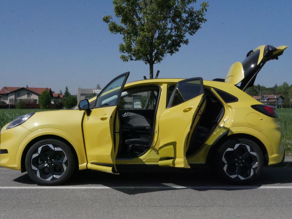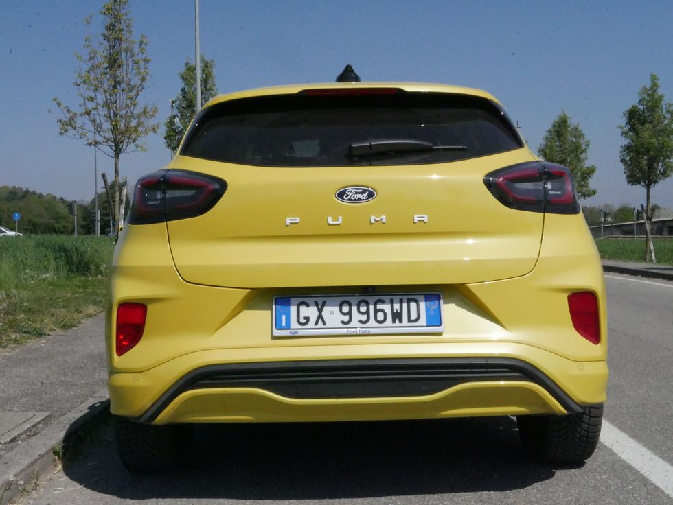 Innanzitutto, la linea: la Puma è un’auto che piace agli italiani: lo scorso anno ha venduto, in tutte le sue motorizzazioni, oltre 25.000 esemplari. Non ci sono parti in plastica non verniciata all’esterno e questo, se da un lato rende più filante la linea, dall’altro espone le zone più critiche, come passaruota e fascioni anteriori e posteriori, a rischio di grattata. L’abitacolo è fatto bene: comodi ed esteticamente belli i sedili, gradevole il rivestimento in finta pelle di parte del cruscotto. Molto luminose le luci a led per illuminare l’abitacolo. Sorprende la capacità di carico: tra bagagliaio, profondissimo box immediatamente sotto (basta alzare il pianale per accedervi) e box ricavato nella parte anteriore, si raggiungono oltre 550 litri di spazio. Abbattendo i sedili posteriori (nella configurazione 60-40) si possono superare i 1.300 litri. Comodo e completo il grande quadro strumenti digitale da 12,8 pollici dietro al volante: tutte le informazioni sono al posto giusto e facilmente adocchiabili. Buona l’abitabilità: gli ingegneri Ford hanno saputo realizzare un piccolo capolavoro sfruttando ogni centimetro di spazio per rendere gradevole il soggiorno a bordo. Fanno egregiamente il loro lavoro i fari a led. Comodo il tunnel centrale a due piani, con tanti spazi dove riporre oggetti pure voluminosi e l’ormai immancabile piastra per la ricarica wireless dello smartphone.