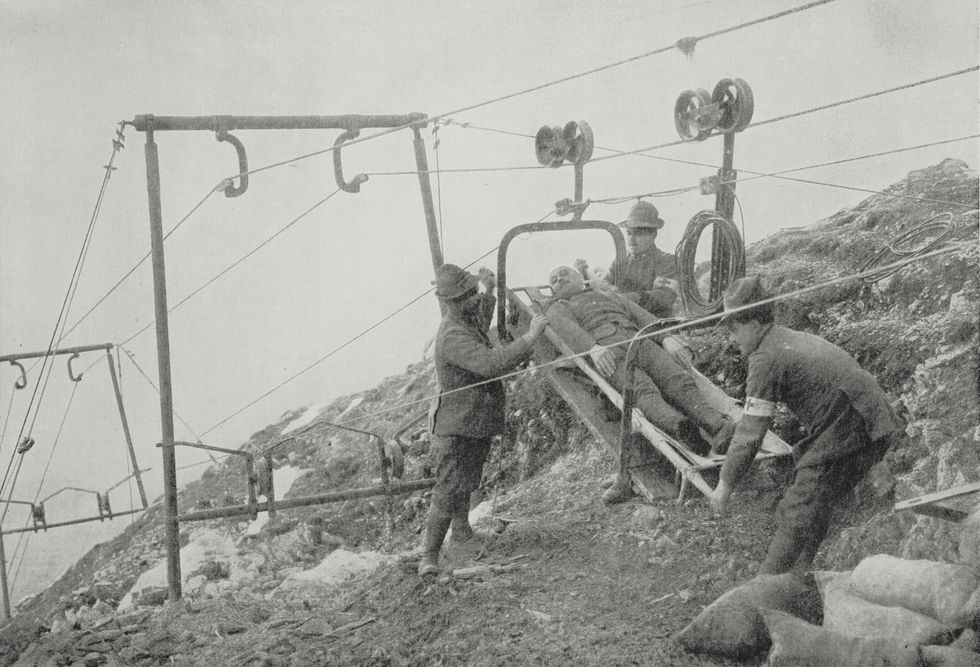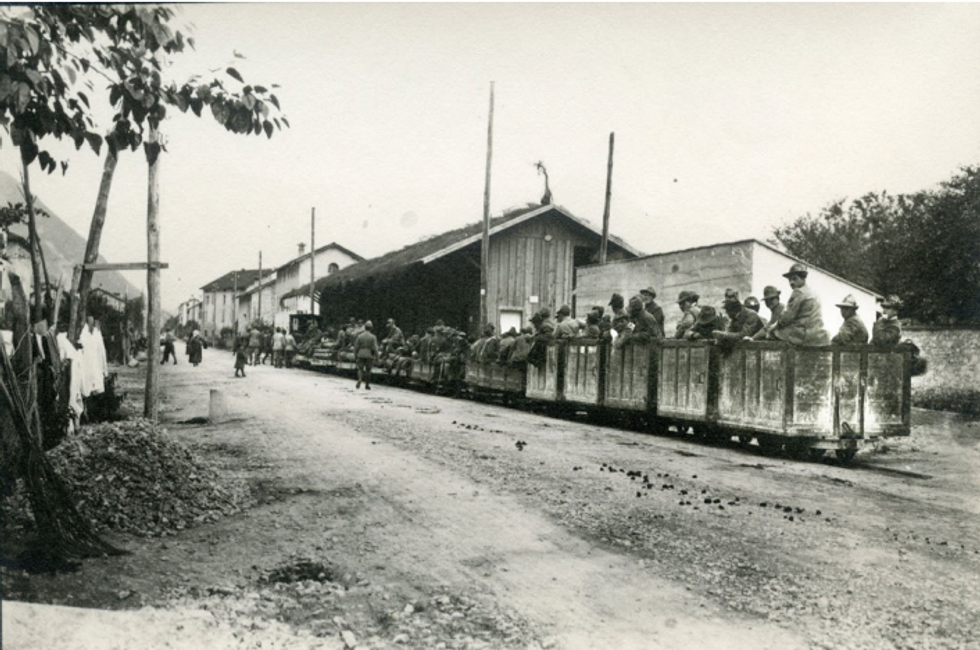 Come già accennato, la logistica fu uno degli aspetti più importanti della Prima guerra mondiale, dato il numero dei militari coinvolti e per le particolari condizioni del terreno dei campi di battaglia. La lunga permanenza in trincea o l’asserragliamento sulle cime dei monti richiedevano un movimento continuo dei rifornimenti. Lo sviluppo della tecnologia in campo ferroviario fu certamente protagonista nel balzo dalla guerra di schieramento tipica del Risorgimento a quella tecnologica del Ventesimo secolo. Lo spostamento di centinaia di migliaia di uomini in armi avvenne sui binari e i treni divennero essi stessi armi potenti con la costruzione dei treni armati, vagoni muniti di grandi pezzi di artiglieria che in Italia furono affidati alla Regia Marina e pattugliarono le coste adriatiche contro le incursioni della Kriegsmarine austriaca. Furono tuttavia le linee più piccole a giocare un ruolo fondamentale negli approvvigionamenti al fronte, in quanto nel 1915 la rete ferroviaria nazionale non era ancora così estesa da poter raggiungere le vallate alpine dove si combatteva la guerra delle cime. Ancora una volta fu il patrimonio industriale italiano a fornire gli strumenti adatti a risolvere il problema. Le ferrovie a scartamento ridotto (o «Decauville» dal nome del loro inventore francese) rappresentarono il tratto di collegamento tra le ferrovie principali e le zone di guerra. Il Genio ferrovieri ne costruì una fitta rete nel Nordest che arrivò ad una lunghezza complessiva di 3.000 km. Caratterizzate dallo scartamento da 0.60 metri e dalle rotaie prefabbricate che potevano essere posate molto rapidamente, le piccole ferrovie di guerra svolsero compiti diversi e fondamentali, dal trasporto truppe alle munizioni, dal vettovagliamento ai feriti negli ospedali delle retrovie fino allo spostamento di operai e civili. A completare quello che oggi chiameremmo l’«ultimo miglio», tra la ferrovia a scartamento ridotto e le trincee in quota furono le teleferiche, la cui tecnica costruttiva fu un fiore all’occhiello per le Forze armate italiane che la ereditarono dalle applicazioni industriali dei primi anni del secolo XX. Di rapida realizzazione, permettevano un altrettanto rapido smontaggio per un eventuale riposizionamento che poteva seguire l’evoluzione del fronte. Anche la rete delle linee teleferiche ebbe uno sviluppo impressionante durante gli anni del conflitto, con un totale di circa 2.300 chilometri di funi d’acciaio che permisero agli uomini che combattevano per le postazioni più alte (vi furono impianti che arrivarono ai 3.000 metri di quota) di resistere al rigore degli inverni grazie alla grande capacità di carico, calcolata in circa 1.200 animali da soma al giorno.