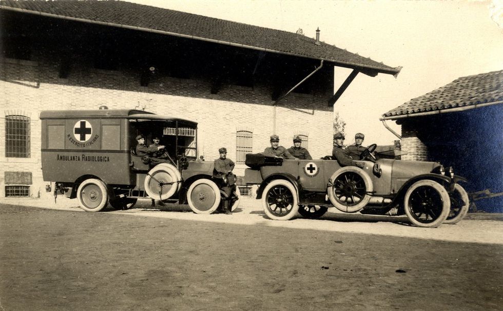 L’effetto sui soldati delle armi automatiche degli shrapnel e delle artiglierie, come è noto, risultò in una notevole evoluzione delle tecniche medico-chirurgiche, pur in mancanza di farmaci fondamentali come gli antibiotici contro le frequentissime e letali infezioni. Se le conseguenze delle ferite e le malattie da trincea come la tubercolosi furono micidiali tanto quanto le nuove armi, il corpo di Sanità svolse un lavoro incessante nell’organizzazione delle strutture ospedaliere a tutti i livelli, dalle infermerie al fronte fino ai grandi ospedali in pianura. La tecnologia venne incontro anche alla chirurgia di guerra, soprattutto nella specialità della radiologia, per la prima volta usata su ampia scala dai tempi della sua scoperta. In Italia l’esigenza di disporre di strumenti diagnostici nelle zone impervie del fronte alpino determinò la nascita dei primi centri mobili di radiologia, autoambulanze allestite con strumenti avanzati di radiodiagnostica e chirurgici su meccanica Fiat 15ter. Il funzionamento dell’apparecchiatura del tipo «Rontgen» era garantito da un alternatore collegato al motore del camion, un mezzo che anticipò lo sviluppo dei moderni centri di soccorso mobile avanzato. La Croce Rossa Italiana ne ebbe in linea una decina dal 1916 al 1918, riuscendo a realizzare migliaia di radiografie utili all’individuazione di corpi estranei nei feriti e nella diagnosi e successivi interventi chirurgici per fratture ed emorragie interne.