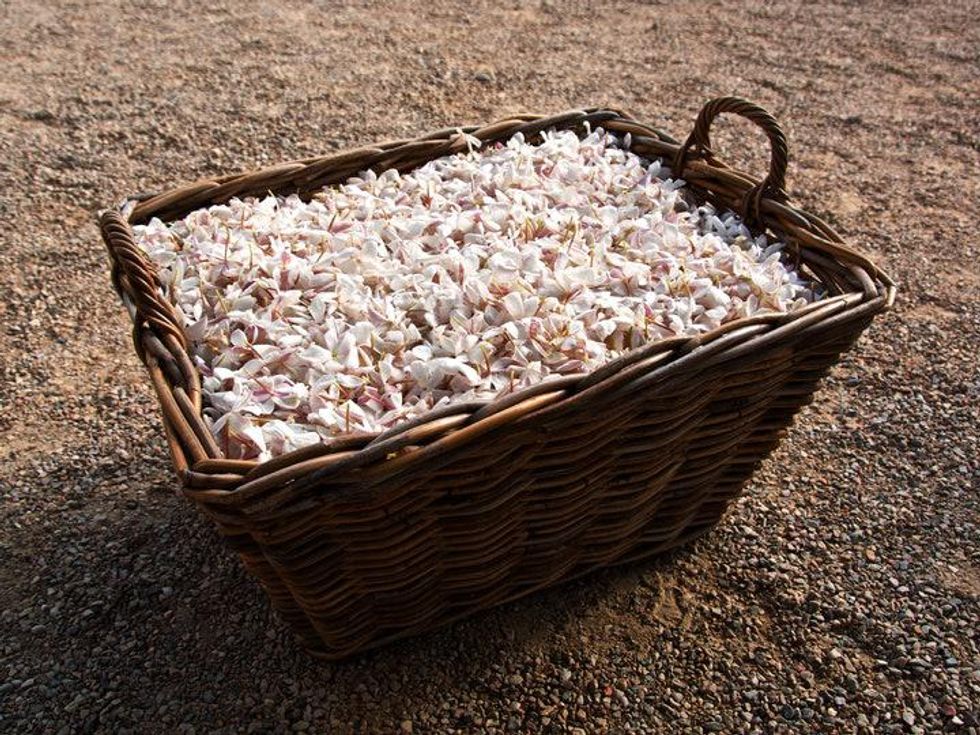 Un flacone di Chanel N°5 da 30 ml contiene 1.000 fiori di gelsomino di Grasse e 12 rose di maggio di Grasse. Un chilo di rosa equivale a 350 fiori mentre un chilo di gelsomino equivale a 8.000 fiori. Ogni lavoratore in un'ora raccoglie 5 kg di rose e 500 g di gelsomini. Per ottenere un chilo di concreta occorrono ben 400 kg di fiori di rosa e 350 kg di fiori di gelsomino. Infine, un chilo di concreta produce 600 g di assoluto di rosa e 550 g di assoluto di gelsomino.