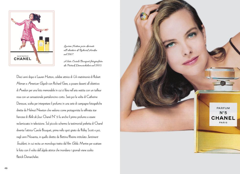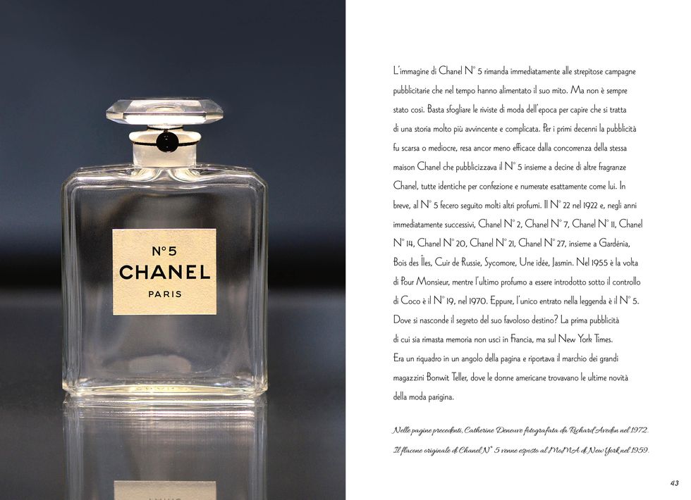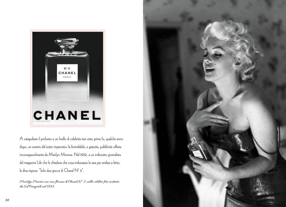 Illustrato da foto d’epoca attinte dagli archivi storici, dagli scatti immortali con Marilyn Monroe, dalle serigrafie di Andy Warhol e dalle più celebri campagne pubblicitarie, il testo ripercorre le tappe di una storia piena di colpi di scena, così avvincente da assomigliare a una favola moderna. «Decennio dopo decennio, la leggenda che lo avvolge ha fatto di Chanel N° 5 qualcosa che va ben oltre un semplice profumo, trasformandolo in un emblema culturale e sociale, capace di ispirare artisti, fotografi, registi» ha raccontato l’autrice Chiara Pasqualetti Johnson. «Buona parte del suo successo si deve proprio alle infinite interpretazioni che sono state date a quel flacone trasparente con le due C intrecciate sulla base del tappo. Un oggetto così riconoscibile da trasformarsi in merce di scambio durante la guerra o in un’icona pop nelle serigrafie di Andy Warhol. Fino a diventare quello che è oggi. Un’ossessione olfattiva globale, il voluttuoso sussurro che segnala la presenza di qualcosa di ricco e sensuale. L’indulgenza verso il piacere, la fragranza di un sogno».