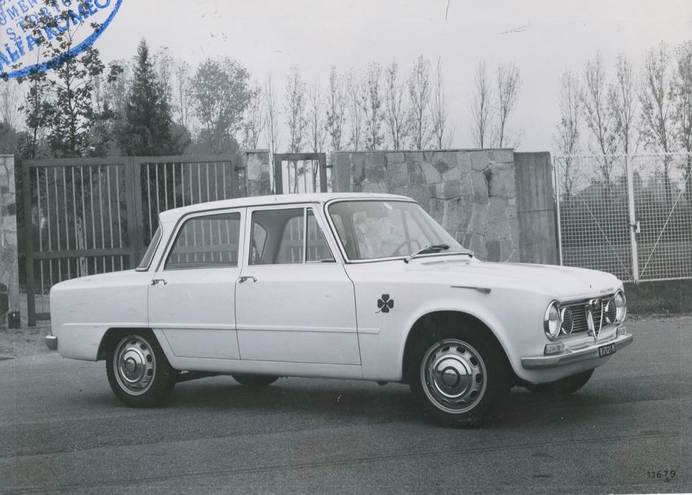 La Giulia, che inizialmente fu nota durante la fase pre-lancio come «1600 TI» per la cilindrata del propulsore aveva una linea del tutto contemporanea e originale, che riprendeva solo in parte il gusto americaneggiante delle tre volumi ispirate dalla Chevrolet Corvair che fu da molti marchi europei imitata. Quello della nuova Alfa Romeo era un capolavoro di design tutto italiano, nata nella famosa galleria del vento del Politecnico di Torino. I «genitori» della linea filante e aggressiva della nuova vettura del biscione furono i nomi chiave del Centro Stile Alfa Romeo Ivo Colucci, in azienda dal 1932 e già artefice della berlina di fascia alta «1900» e Giuseppe Scarnati, ingegnere a capo della struttura reduce dal successo di stile della «Giulietta». Il risultato uscito dalla galleria fu eccezionale, perché la nuova «Giulia» aveva un coefficiente di penetrazione aerodinamica estremamente ridotto, pari ad un cx di 0,34 che per la categoria rappresentava un record assoluto. La linea filante era caratterizzata da un disegno unico che terminava con la caratteristica coda tronca e il disegno rastremato del bagagliaio posteriore. Il frontale, dominato dallo scudo Alfa Romeo e dalla griglia metallica esprimeva tutta la velleità sportiveggiante della «Giulia», con i quattro fari anteriori di diametro differente che regalavano alla nuova Alfa la tipica espressione «accipigliata» come a voler aggredire la strada con le sue caratteristiche sportive in una berlina dedicata anche alla famiglia. Il disegno della carrozzeria era l’elaborazione di un progetto precedente, il «tipo 103», un prototipo di utilitaria pensato dall’azienda del Portello nella prima fase della motorizzazione di massa italiana. Dallo spirito spartano, la tre volumi avrebbe dovuto essere spinta da un motore di soli 850cc ma il progetto non ebbe seguito anche perché la rapida crescita dei primi anni Sessanta fece deviare i vertici dell’Alfa Romeo guidati dall’ingegner Giuseppe Luraghi verso una vettura di fascia più alta, visto l’aumento del potere d’acquisto di buona parte degli Italiani. Oltre al disegno della carrozzeria, l’aspetto che rese la «Giulia» unica nel panorama automobilistico dell’epoca fu la meccanica. La «1600 TI» del 1962 era infatti dotata di una caratteristica all’epoca rara anche nelle auto di fascia superiore: il cambio a cinque marce sincronizzate di serie. Il motore bialbero da 1.570cc. codice AR00514 racchiudeva ulteriori sorprese, come le valvole di scarico raffreddate al sodio di derivazione aeronautica. Il 4 cilindri con testa in lega d’alluminio erogava ben 92 Cv, capaci di portare la «Giulia» a superare i 175 Km/h quando le vetture coeve di pari cilindrata raramente superavano i 140 Km/h. Una velocità di punta supportata anche dalla eccellente tenuta di strada garantita dal telaio e dalla soluzione delle sospensioni a quadrilateri sovrapposti. Solo per alcuni aspetti che caratterizzano soltanto le primissime serie della nuova Alfa rimanevano poco consone alla impostazione sportiva del modello. Si trattava dell’impianto frenante, inizialmente dotato di quattro tamburi che rappresentavano una soluzione ormai anacronistica e che saranno sostituiti da quattro dischi già dai primi anni di produzione. Inoltre la «1600 TI» degli esordi era ancora dotata di cambio al volante e panca anteriore unica, più adatta al gusto delle mastodontiche berline americane. Queste caratteristiche dissonanti, a cui si aggiungeva il cruscotto con tachimetro a sviluppo orizzontale, scomparvero ben presto sostituiti dai leggendari strumenti circolari a doppia palpebra e dal volante sportivo a tre razze che accompagneranno la «Giulia» fino alla fine della sua lunga carriera, durata dal 1962 al 1977. Presentata ufficialmente al pubblico il 26 giugno 1962 ebbe dalla stampa specializzata una ottima accoglienza, alla quale seguì presto il successo al pubblico. La storia della «Giulia» parla di un’evoluzione continua di allestimenti e modelli sulla base di quella idea originaria nata negli anni del boom. All’impostazione corsaiola in casa Alfa Romeo seguì per la nuova vettura un destino nelle competizioni nella categoria Gran Turismo con la nascita di una versione dedicata alla pista, la TI Super, nota anche come «Giulia Quadrifoglio» in quanto la prima a fregiarsi del mitico simbolo delle corse del Biscione. Si trattava di una rielaborazione della vettura di serie opportunamente alleggerita dalla carrozzeria «Touring» (per un peso di soli 910 kg) e prodotta in un numero limitatissimo di esemplari tra il 1963 e il 1964.