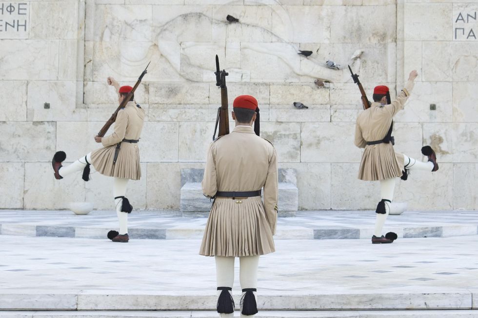 Lasciate il Giardino Nazionale in Piazza Syntagma, che si trova di fronte all'Antico Palazzo Reale, oggi sede del Parlamento greco. Trascorrete un po' di tempo semplicemente seduti nella piazza, con un caffè freddo in mano, e godetevi un po' di sano people watching: molti giovani ateniesi frequentano questa zona. Dopo aver reso omaggio alla Tomba del Milite Ignoto, assistete alla cerimonia del Cambio della Guardia, ogni ora - la domenica alle 11:00 questa usanza è particolarmente elaborata.