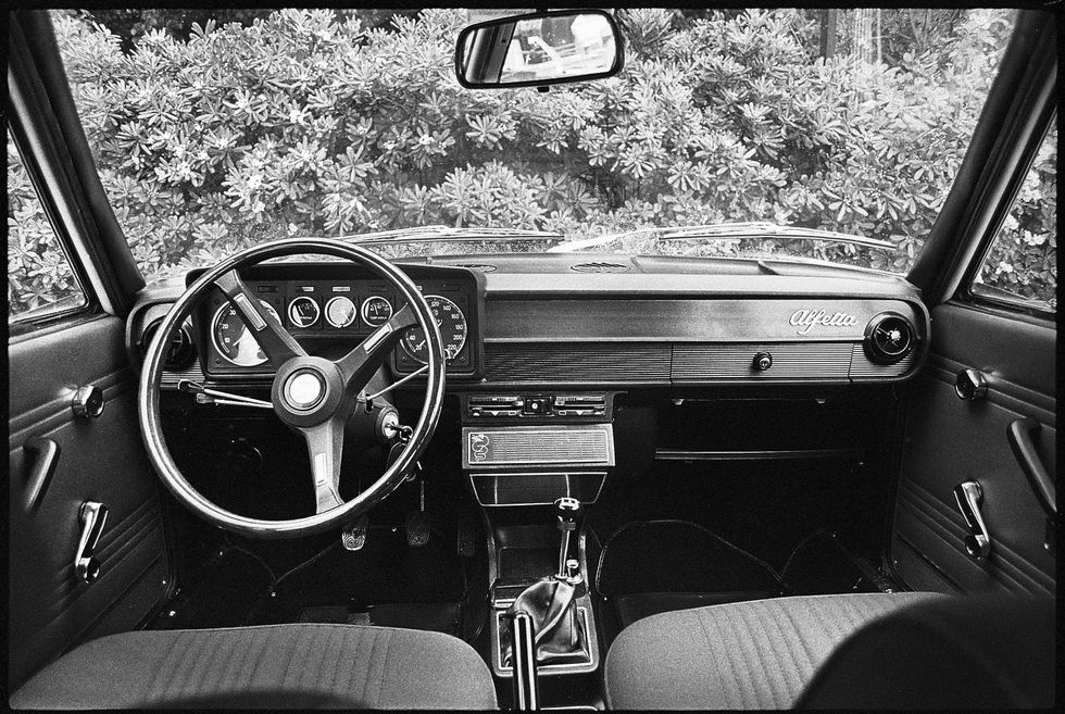 La videro circolare, con la carrozzeria camuffata, per qualche giorno all’alba del nuovo decennio degli anni Settanta, nel gennaio 1971. Sotto quei pannelli che rendevano quella strana vettura quasi deforme, si celava la novità che avrebbe caratterizzato una nuova pagina della storia della casa milanese del biscione, l’Alfa Romeo «Alfetta». La nuova berlina tre volumi di fascia medio-alta che mezzo secolo fa faceva il suo esordio dagli stabilimenti di Arrese rappresentò certamente un punto di rottura con il passato della produzione della casa, uscita dagli anni Sessanta con best seller come la «Giulia», la «Spider» e l’ ammiraglia «1750». La nuova Alfa si presentava al mercato in un momento non troppo felice, sia per l’azienda milanese controllata dall’Iri che per il Paese. L’Alfa Romeo veniva da un anno magro, il 1970, segnato dai pesanti e continui scioperi negli stabilimenti. Sempre nello stesso periodo il marchio milanese faticava ad avviare i nuovi stabilimenti di Pomigliano d’Arco dove sarebbe nata un’altra delle vetture storiche del biscione, l’Alfasud. Tuttavia la voglia di rivoluzione e di conquista di nuovi acquirenti era forte tra la dirigenza degli ultimi anni dell’era dell’ingegnere Giuseppe Luraghi. La coperta era però assai corta. Gli investimenti (molto pesanti) in nuove linee di produzione impensabili in quegli anni di crisi economica e occupazionale. Bisognava tirare fuori dal cilindro un’idea che conciliasse le ristrettezze finanziarie con la realizzazione di un’automobile tutta nuova. Queste furono le premesse della nascita dell’«Alfetta», che vedrà la luce nella tarda primavera del 1972. I vincoli maggiori vennero dall’interasse, ereditato dalla progenitrice «Giulia» (la cui produzione proseguì parallela all’Alfetta per quasi tutti gli anni ’70) per motivi di adattamento della catena di montaggio. Questo significava un ostacolo non indifferente per l’aumento dell’abitabilità e per gli ingombri dei passaruota. Fu il glorioso passato delle corse del biscione in Formula 1 a offrire la soluzione. L’ispirazione (ed il nome della nuova vettura) vennero dalle «Alfetta» monoposto che portarono Manuel Fangio e Giuseppe «Nino» Farina ai trionfi dei primi anni Cinquanta. Queste ultime presentavano una meccanica particolare, caratterizzata dallo schema cosiddetto «transaxle», cioè con il blocco cambio-frizione alloggiato posteriormente assieme al differenziale. Dalla progenitrice 159 Alfetta, la nuova berlina prendeva anche il ponte posteriore di tipo De Dion, caratterizzato da una barra di torsione a «u» che permetteva un’ottimizzazione nella distribuzione dei pesi e degli organi sospesi. Le sospensioni anteriori erano invece indipendenti di tipo a bracci oscillanti con barra antirollio. I freni a disco posteriori erano sistemati entrobordo, vicini al cambio al retrotreno. Il motore della prima serie del 1972 era uno solo: un 4 cilindri di 1.779cc. da 122 cavalli con due carburatori doppio corpo e il cambio a cinque velocità di serie. Non si trattava dell’Alfa più veloce in assoluto (la Giulia Gt «Veloce» arrivava a 200 km/h) ma permetteva alla berlina di raggiungere il traguardo di tutto rispetto dei 180 km/h. La carrozzeria e il design erano altrettanto innovativi. Il cofano cosiddetto «deportante» rendeva filante ed aggressivo l’anteriore caratterizzato dai quattro fari circolari di uguale diametro ai lati del tipico scudetto Alfa. Il posteriore, un «coda tronca» tipico delle linee degli anni Settanta, era massiccio e alto, a vantaggio della capienza del bagagliaio. Il prezzo non era proprio per tutte le tasche: 2 milioni e 245mila lire esclusi optional (pochi, in verità, tra cui l’aria condizionata). La concorrente e coeva Fiat 132 1.800 costava poco più di 1 milione e 800mila lire ed era molto più accessoriata nella scelta delle opzioni.