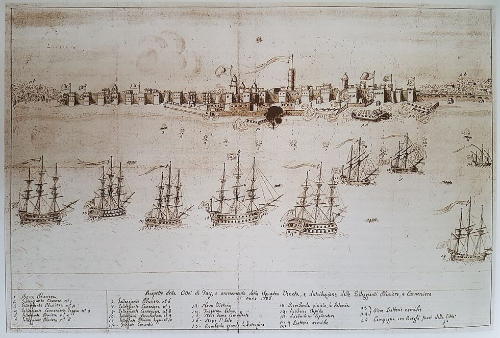 Il leone di San Marco, chiuso il libro simboleggiante la pace della Repubblica di Venezia, sventolava brandendo la spada sulle insegne della Armata da Mar, la marina da guerra veneziana dispiegata di fronte a Tunisi. Era il 5 settembre 1784.