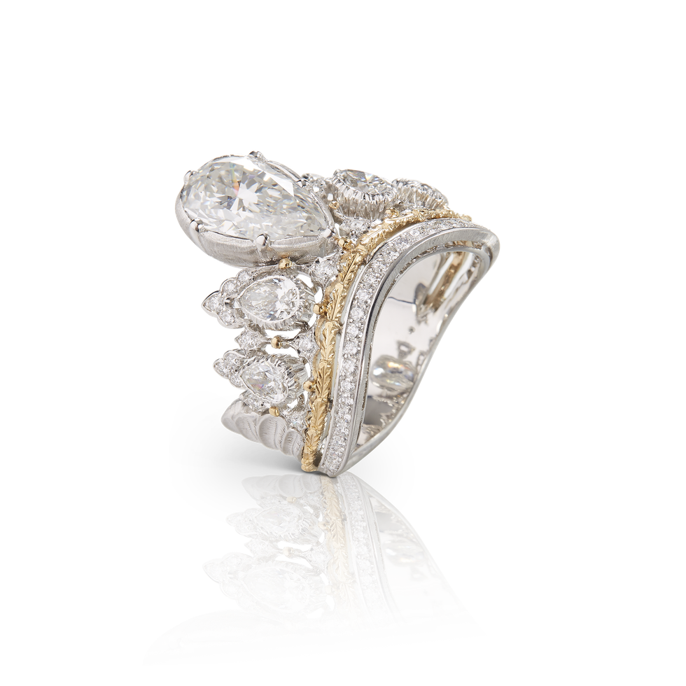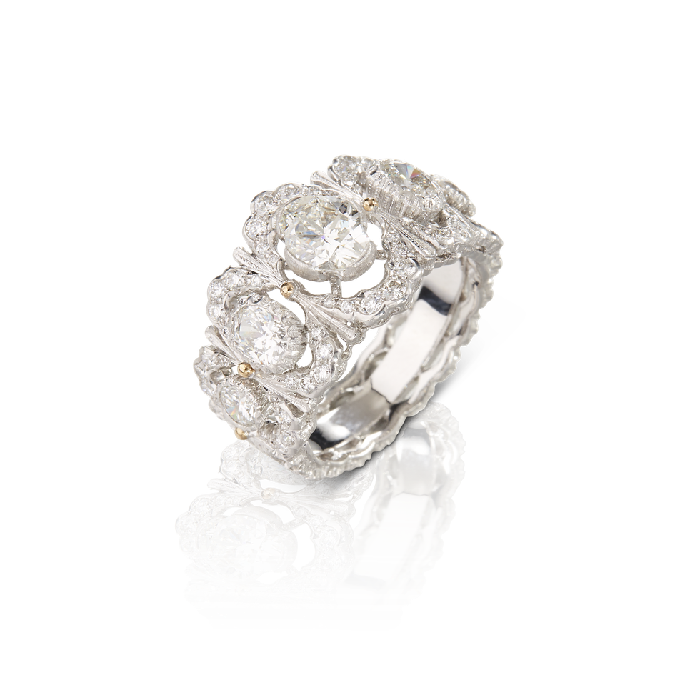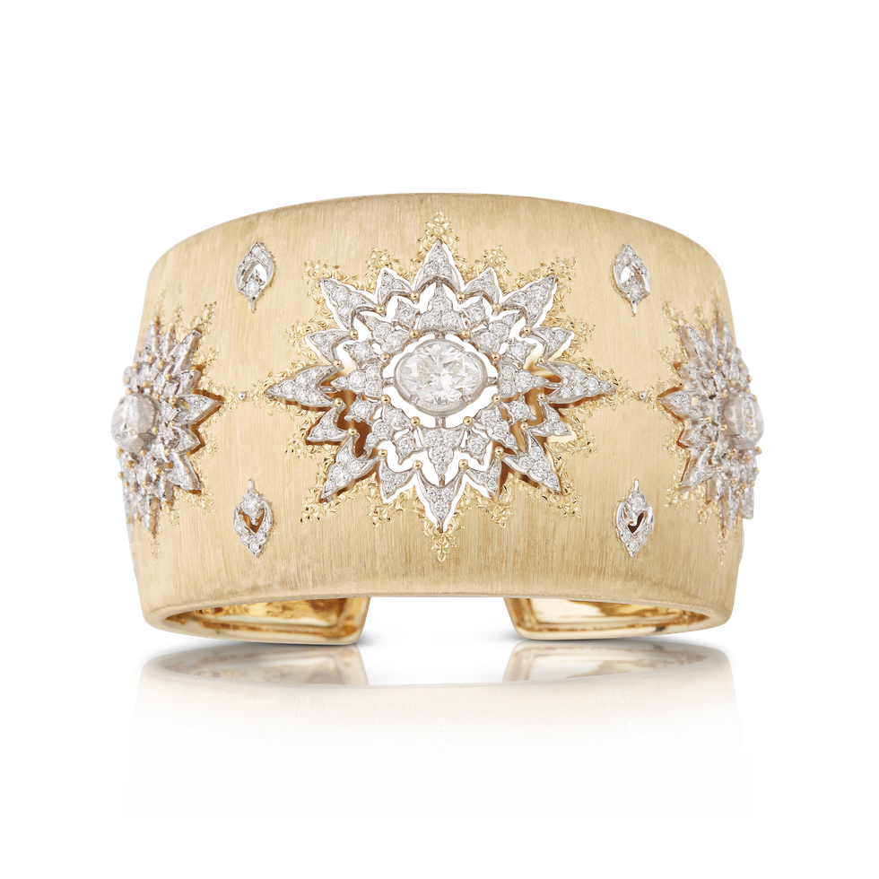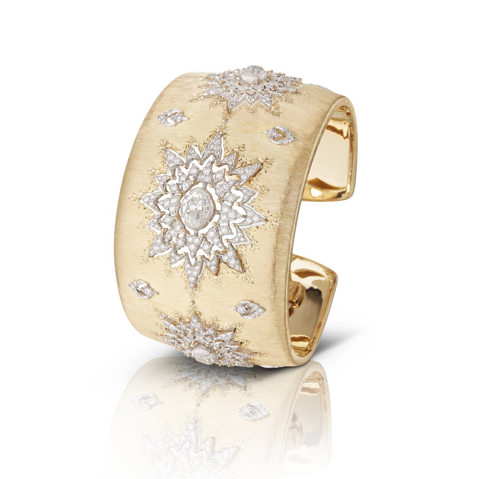 Ogni diamante taglio Buccellati ha la sua storia e contribuirà allo sviluppo delle comunità locali nel Paese d'origine. Oggi, i gioielli Buccellati sono ammirati in tutto il mondo non solo per il loro design e per l'artigianalità con cui vengono creati, ma anche per le tecniche di incisione utilizzate, che risalgono alle antiche tradizioni delle botteghe orafe italiane del Rinascimento, e per le forme che fondono al loro interno diverse fonti di ispirazione, dall'arte dell'antica Grecia all'antica Roma.