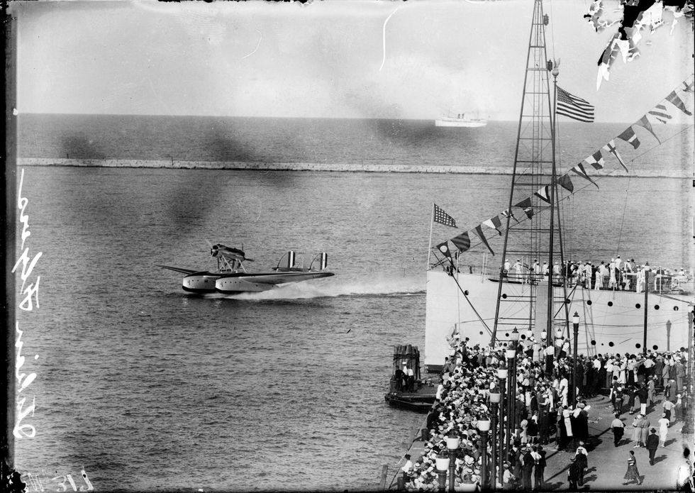 Erano gli aerei della Squadriglia Atlantica italiana, a pochi minuti dal coronamento della più grande impresa aeronautica dalle origini del volo: la trasvolata dell’Atlantico da Orbetello a Chicago (e ritorno) guidata dal Generale Italo Balbo. Dall’alto delle loro cabine di pilotaggio anche gli aviatori videro qualcosa di spettacolare: una fiumana di spettatori brulicava sotto i loro occhi nei pressi del punto di atterraggio sulle rive del lago Michigan. Solo un’ultima manovra e poi, ad uno ad uno, i 24 Savoia S-55X toccarono il pelo dell’acqua increspando di onde le rive dell’idroscalo. La prima parte della «Crociera Atlantica del Decennale» si era conclusa.