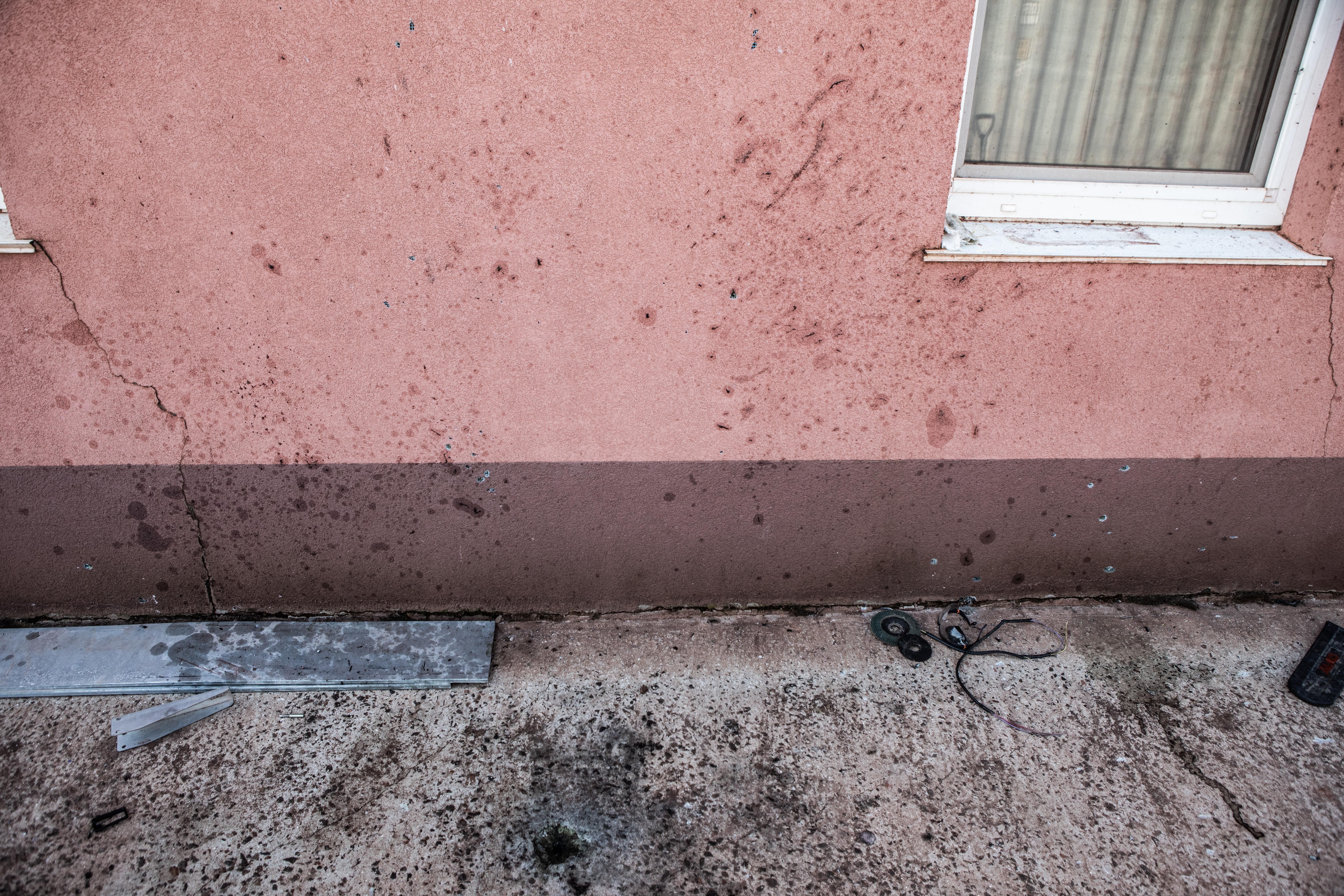 Le bombe a grappolo scoppiano in continuazione intorno, e la corsa verso il bunker è diventata sempre più frequente, Karolina, la nostra interprete passa il suo tempo fuori vicino a una finestra che è stata modificata per poter saltare giù nella cantina della casa il più velocemente possibile. Svegliandoci ieri mattina abbiamo trovato alcuni dei pezzettini di ferro che nella notte erano caduti sopra la base.