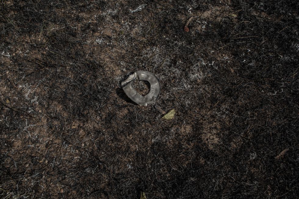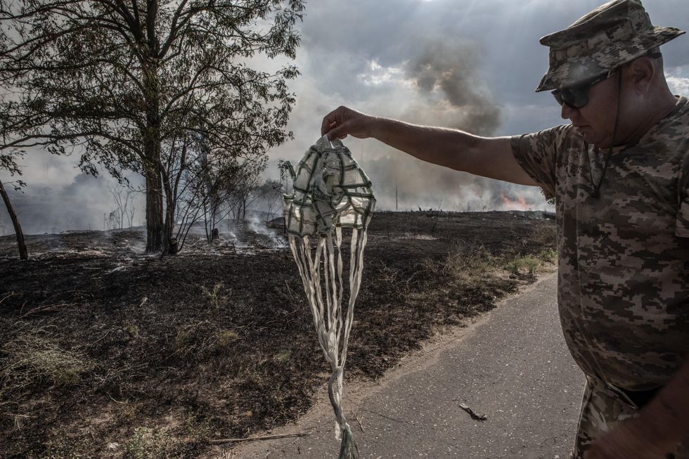 L’ultima verifica la facciamo prima di sera, a circa 7 chilometri da dove alloggiamo c’è un villaggio, una zona residenziale fuori dalla città di Mykolaiv: uno di questi ordigni ha fermato la sua corsa sopra le case grazie al paracadute che serve proprio per sganciare i grappoli a caduta sopra un punto specifico come un centro abitato in questo caso. Le bombe a grappolo hanno dato fuoco a una vasta area ma per fortuna con un errore di una cinquantina di metri e così solo una stalla è stata colpita nella zona e l’involucro si è conficcato a pochi metri.