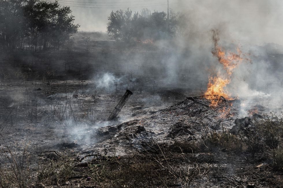 Il comandante Vova che ci sta accompagnando nei campi di grano che delineano la linea alle fronte ci racconta i vari episodi che lo hanno visto coinvolto in bombardamenti di questo genere: «Non so da dove ne prendano cosi tante», ci dice, «ma ci sono stati giorni che sembrava piovesse, al fronte non siamo mai a più di un metro e mezzo dalla trincea per buttarci dentro appena sentiamo l’esplosione in volo dell’involucro».