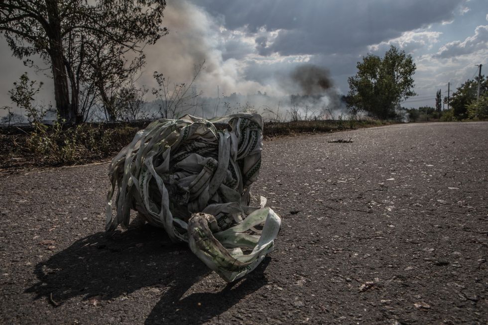 Negli svariati viaggi sulla prima linea che abbiamo effettuato in questi giorni abbiamo potuto verificare come l’uso delle bombe a grappolo sia fatto in maniera massiccia dall’armata russa per cercare di neutralizzare i soldati nelle trincee più avanzate, per avere maggiori probabilità che una di queste centinaia di «bombette» (in gergo vengono chiamate bomblets) riescano a far centro in una delle poche vie di entrata delle trincee.