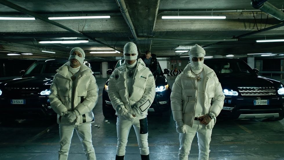 Philipp Plein presenta anche la sua collezione e per celebrare il ventesimo anniversario del brand è tornato a sfilare a Milano. Ispirazione Tony Montana del film Scarface, interpretato da Al Pacino. Il dandy contemporaneo in giacca, pantaloni e T shirt diventa uno street boy che indossa sneaker abbaglianti di paillettes a zig zag, insieme a giacche decorate con motivi a stella, camouflage e animalier.