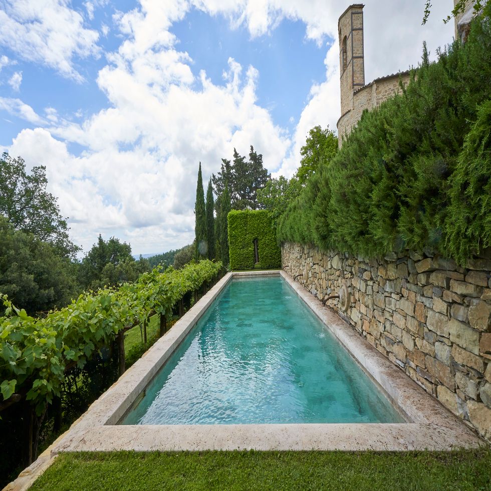 Un castello risalente all'XI secolo, ma anche un ristorante stellato, 5 ville e 2 appartamenti, la Chiesa di Pieve di San Michele Arcangelo di Fighine, un teatro e splendidi giardini.