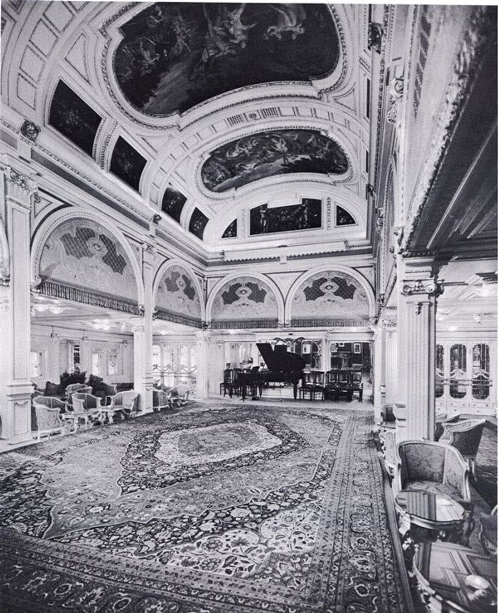 Il fiore all’occhiello del nuovo transatlantico erano i saloni della prima classe. Fu Adolfo Coppedè, membro del famigerato atelier fiorentino che sfornò ebanisti, pittori ed architetti (il fratello Gino Coppedè fu l’artefice dell’omonimo quartiere liberty di Roma) ad occuparsi dell’arredo del «Conte Biancamano». Il risultato fu un arredo sontuoso, caratterizzato da una interpretazione art déco di motivi neobarocchi, in particolare nella grande sala da ballo dove si svolgevano le serate di gala a bordo del transatlantico.