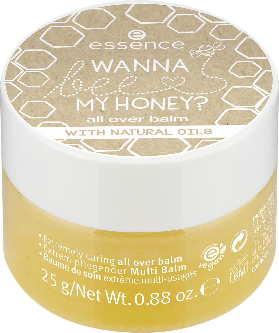 «Wanna bee my honey?» si compone di otto prodotti. Una palette di ombretti e illuminanti dalle tonalità dorate. Ogni ombretto opaco è caratterizzato da un aroma dolce e una texture setola, mentre i due illuminanti garantiscono un finish scintillante. Come tutti i prodotti essence, i colori sono riccamente pigmentati. Uno speciale pennello con un look a nido d'ape dorato aiuta ad applicare perfettamente ogni ombretto, grazie alle sue setole sintetiche.