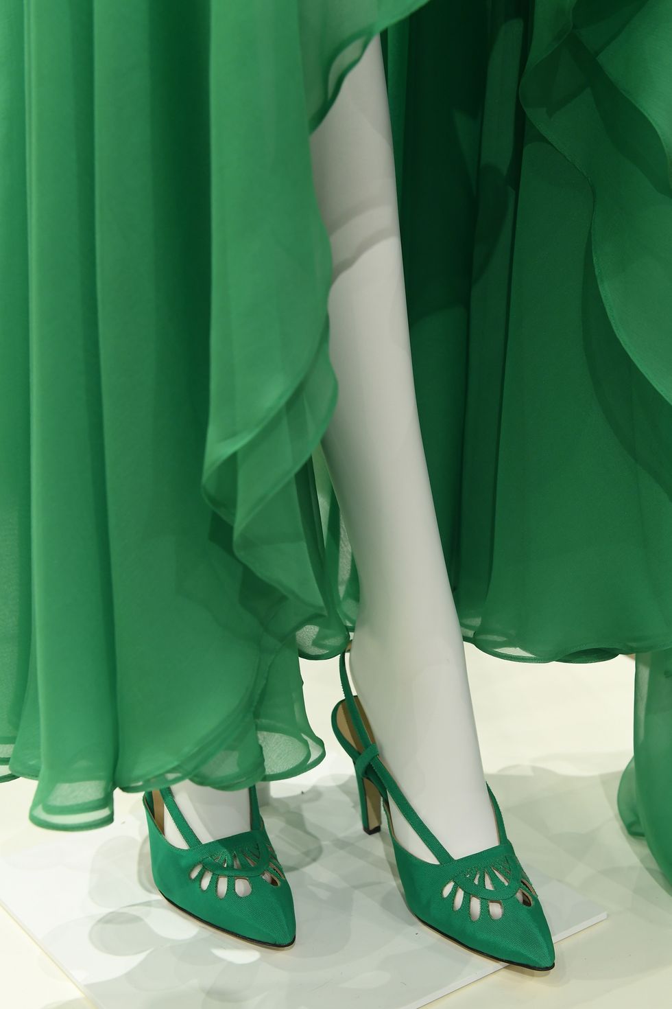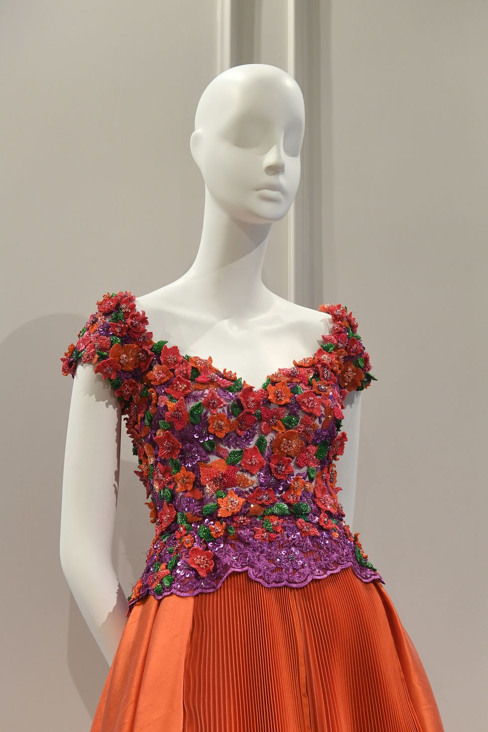 «L'abito Tagliatelle con 21 striscioline di tessuto lunghe fino ai piedi cucite e rivoltate; Smeraldo, 18 metri di velo impalpabile tagliato in sbieco, drappeggiato e doppiato; Gigliola, 47 metri di chiffon rosso e rosa drappeggiati. E la redingote di faille rosso con 10 cannoni fatti ad ombrello che rendono il passo regale e danzante».