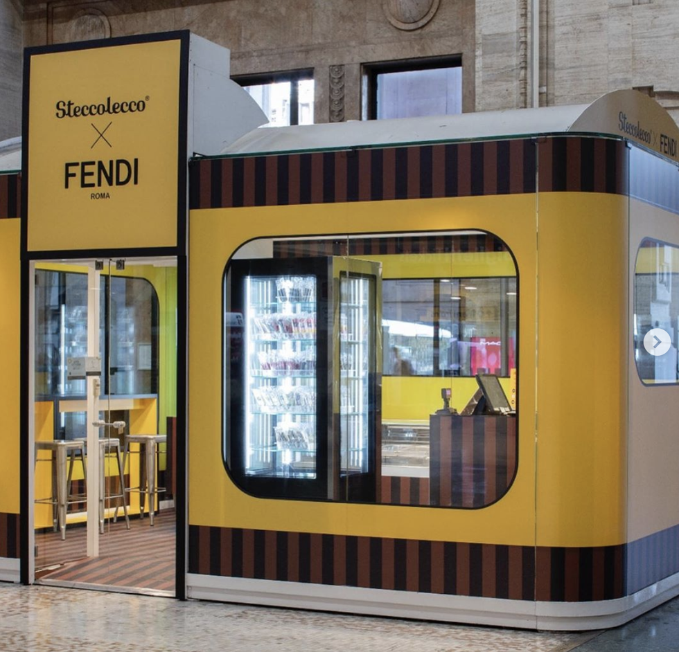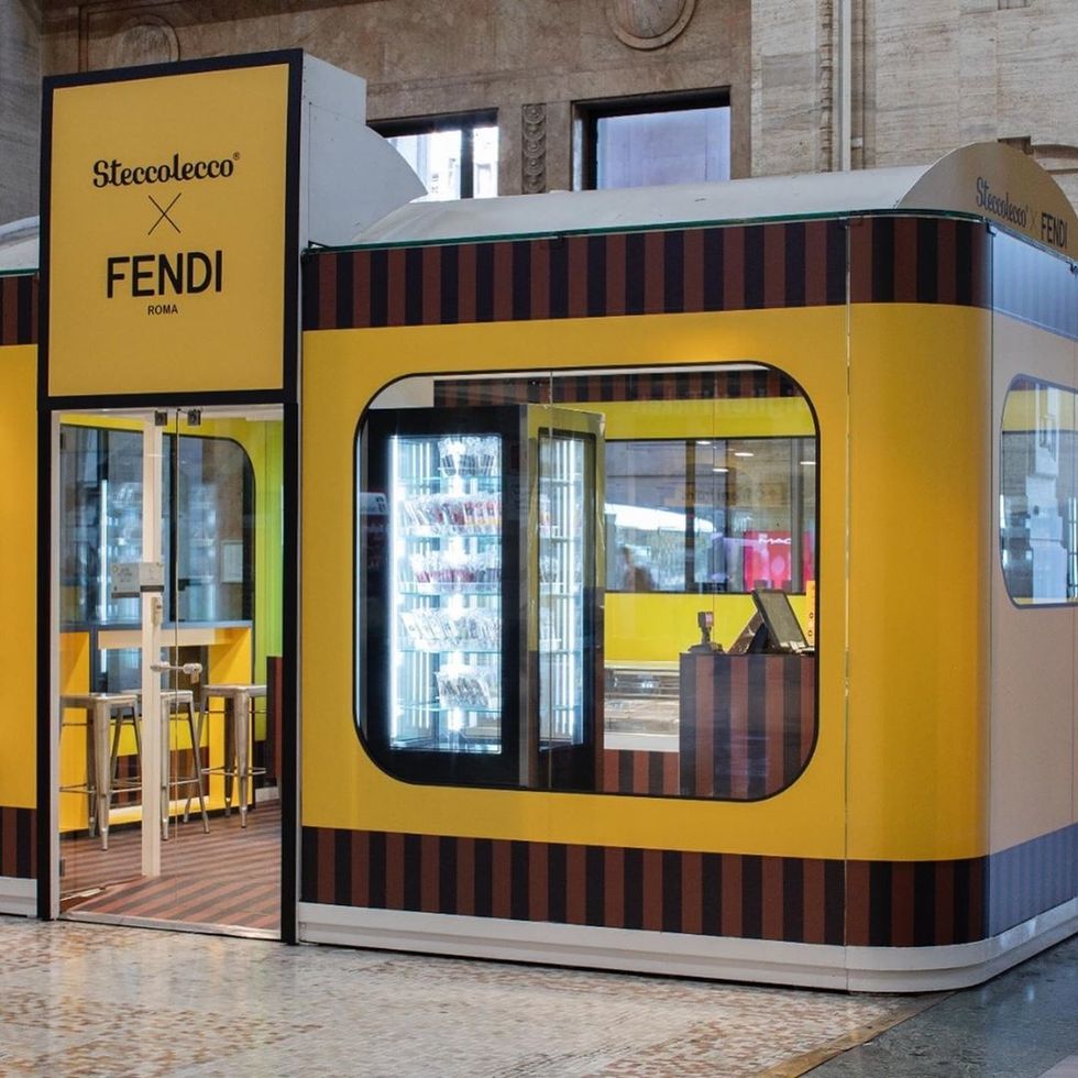 È così che durante la settimana della moda, Milano apre le porte non solo ai vestiti ma anche al gusto, con una serie di eventi creati ad hoc per esplorare il mondo del buon cibo tra una sfilata e l'altra. Fino al 14 ottobre, in Stazione Centrale è possibile visitare un inedito pop up, nato dalla collaborazione tra Fendi e il brand Steccolecco. Il piccolo negozio, caratterizzato dal tipico giallo senape e il motivo a righe Pequin, offre una serie di ghiaccioli e gelati su stecco con il logo Fendi, in tante declinazioni di gusto e colore.