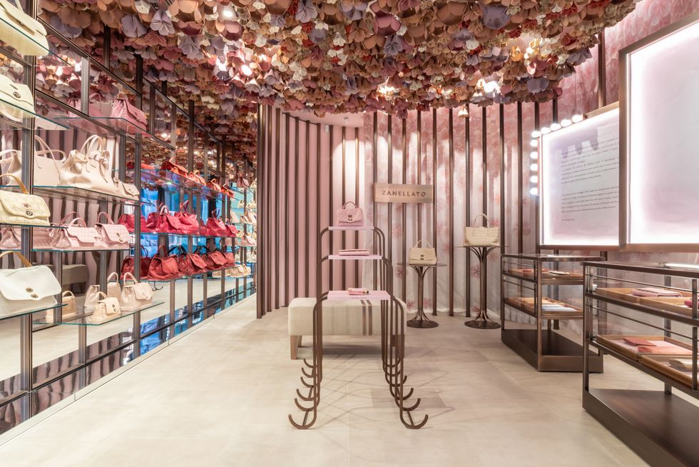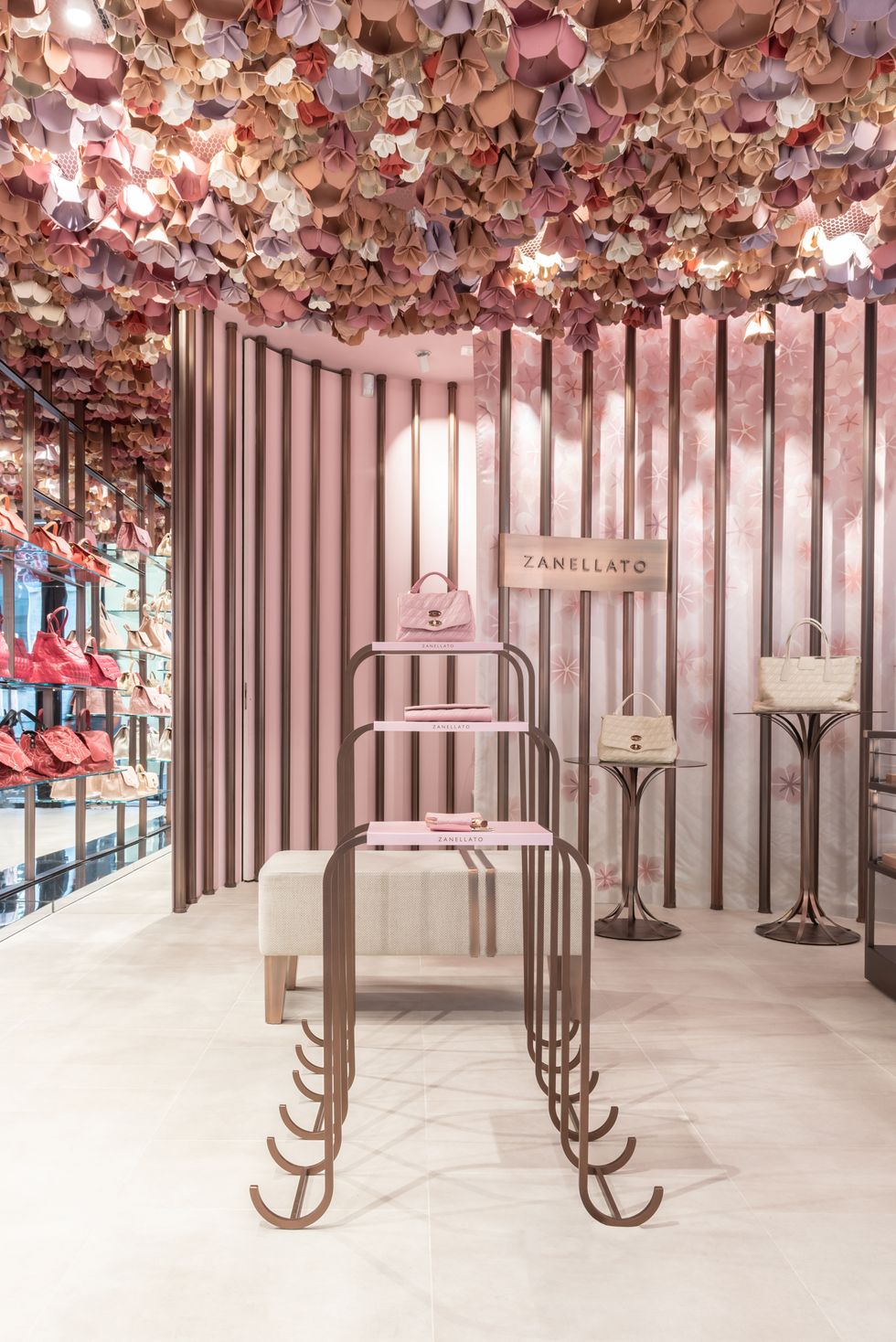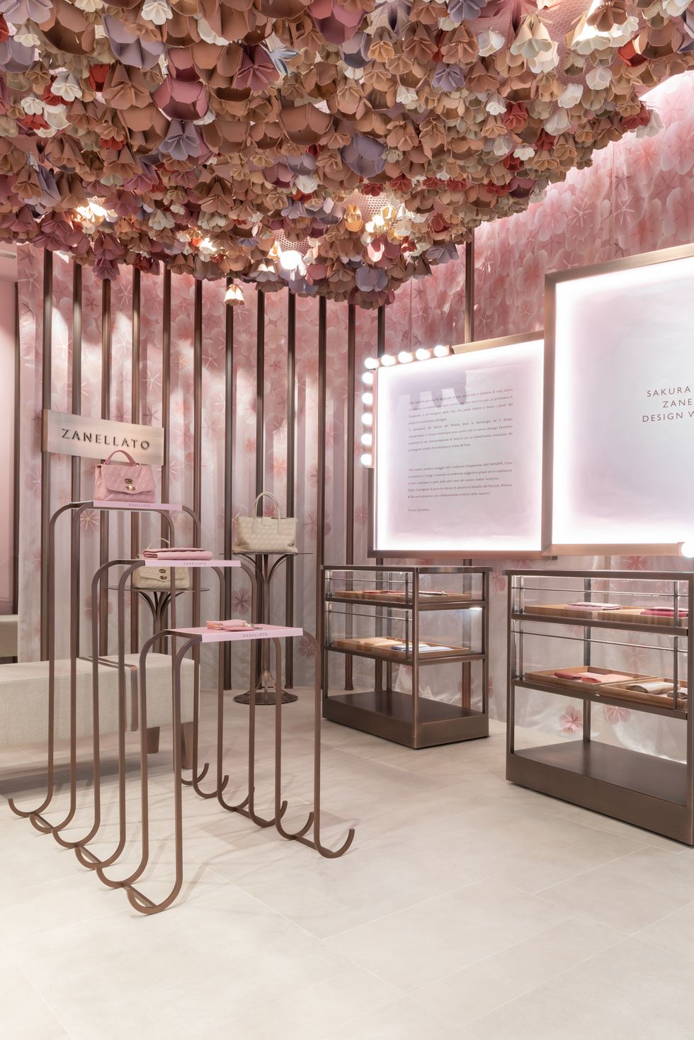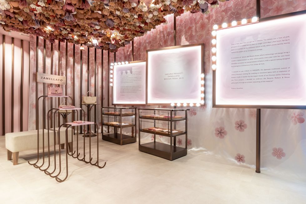 - Con la sua Postina Franco Zanellato porta la fioritura dei ciliegi giapponesi anche a Milano. Nel negozio di via Bagutta a Milano un'istallazione fatta da 3.000 fiori in pelle ecosostenibile.
