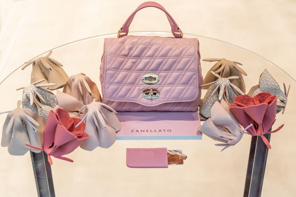 Franco Zanellato si è innamorato del Giappone al punto da voler portare la bellezza dei sakura in Italia, durante il Salone del Mobile. Per questo non solo ha creato un'installazione con centinaia di fiori rosa in pelle, ma ha anche trasformato la sua celeberrima borsa, la Postina, rendendola un piccolo fiore da collezione e colorandola con le tonalità rosa tipica della primavera nipponica.