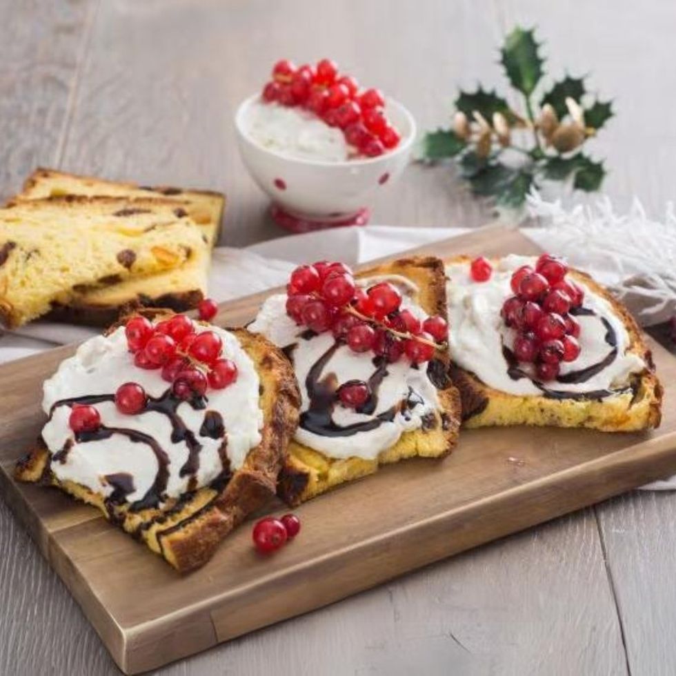 Bruschetta di panettone al ribes e gorgonzola