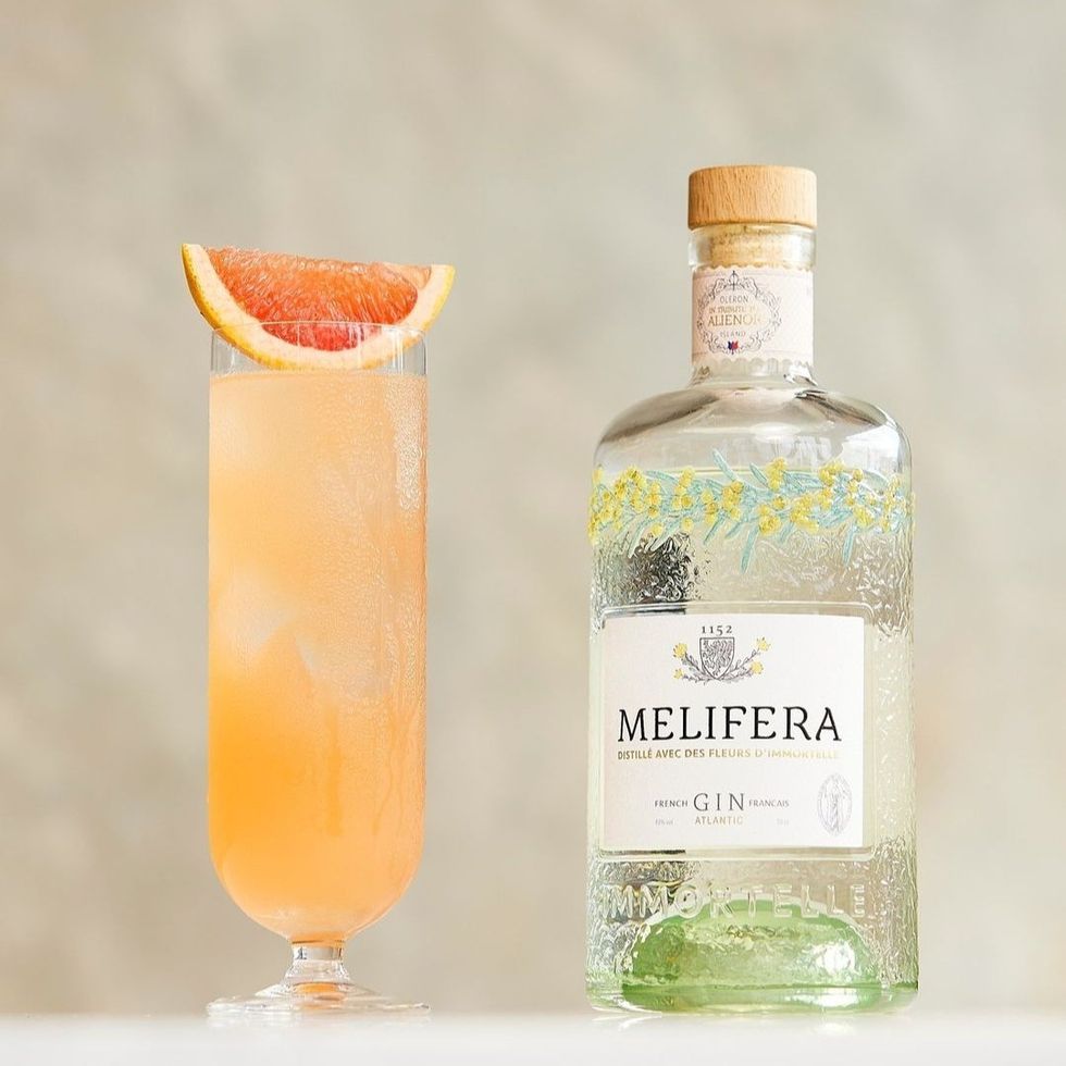 Ingredienti: 40 ml gin Melifera, 100 ml Le Tribute Pink Grapefruit, sale q.b.
