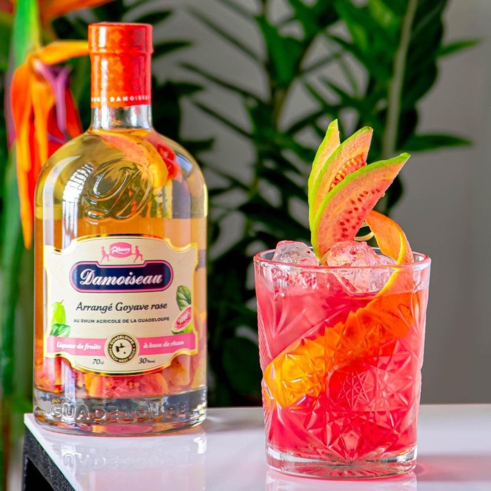 Ingredienti: 25 ml rum Damoiseau Arrangé Pink Guava, 30 ml vermut Not Another Vermouth, 30 ml Campari