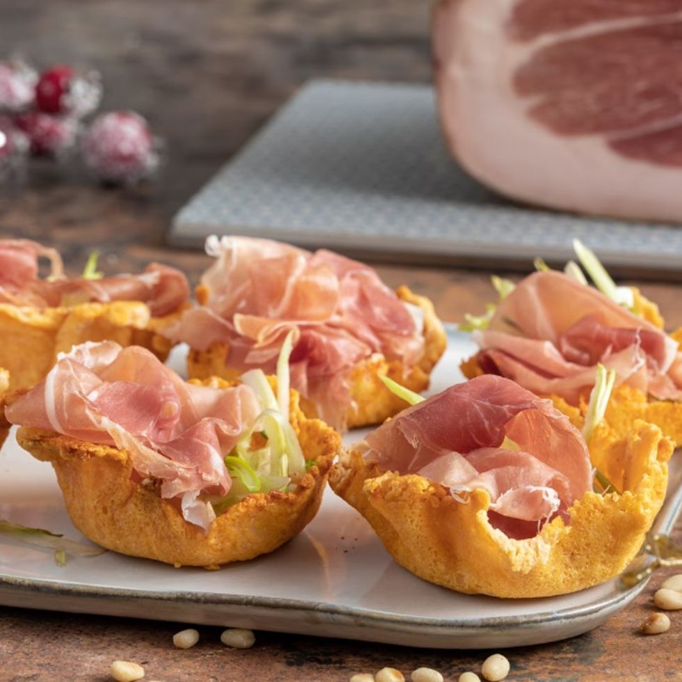 Cestini di grana con prosciutto crudo e stracciatella