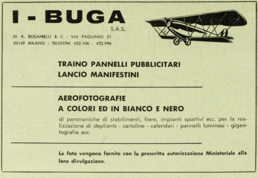 Molti ancora ricordano i voli in cerchio di piccoli aerei da turismo che trainavano un lungo striscione pubblicitario, come quelli che si potevano ammirare nei giorni di apertura della Fiera Campionaria di Milano. Ai comandi di uno di quei velivoli ci fu anche una donna, nata a Parma nel 1914, l’anno successivo al brevetto di Rosina Ferrario. Da sempre vissuta a Milano, Annalena Bugamelli si innamorò, prima del volo, delle automobili e partecipò a due edizioni della Mille Miglia tra le due guerre. Nel 1948, si dice a seguito di una delusione sentimentale, cominciò a frequentare il mondo dell’aviazione civile per conseguire il brevetto di volo che otterrà molto più tardi, nel 1964. Membro di quella API, l’associazione delle donne pilota fondata da Fiorenza De Bernardi, Annalena vola su uno dei monomotori a elica più diffusi: il Cessna 172H «Skyhawk» con motore Continental da 145 Cv e quattro posti. Quello pilotato dalla Bugamelli, di stanza all’Aero Club Varese sulla pista di Venegono, portava le marche I-BUGA, in onore del suo nomignolo, «la Buga», che le avevano dato gli amici in aeroporto. La pilota milanese fu la prima donna a fare della passione del volo un mestiere che non si limitava al diporto. Nel 1969 fondava la sua agenzia fotografica specializzata in immagini aeree, che battezzò I-BUGA come il suo Cessna. Vicino alla Fiera di Milano, in via Pagliano 31, la sede operativa della società, che negli anni ebbe in flotta un altro Cessna con le marche I-CCBF. Oltre all’aerofotografia per il settore industriale e quello del turismo e delle istituzioni, l’agenzia si occupava di lancio di manifestini e traino di pannelli pubblicitari. Annalena, durante l’attività di aviatrice e fotografa ha realizzato migliaia di immagini a colori e in bianco e nero delle meraviglie turistiche e naturali, ma anche una dettagliata serie di fotografie che immortalano l’industrializzazione italiana ben prima dell’avvento delle mappe digitali dei colossi del web. L’agenzia I-BUGA rimase in attività fino al 1998 e la sua titolare era la donna pilota più anziana d’Italia. Alla sua morte, in virtù di un vitalizio concesso dal Comune di Milano negli ultimi anni di vita, il suo archivio è stato rilevato dalle Civiche Raccolte fotografiche del capoluogo lombardo, e sono visualizzabili anche online a questo link. Annalena Bugamelli si spegne nel 2002 all’età di 88 anni.
