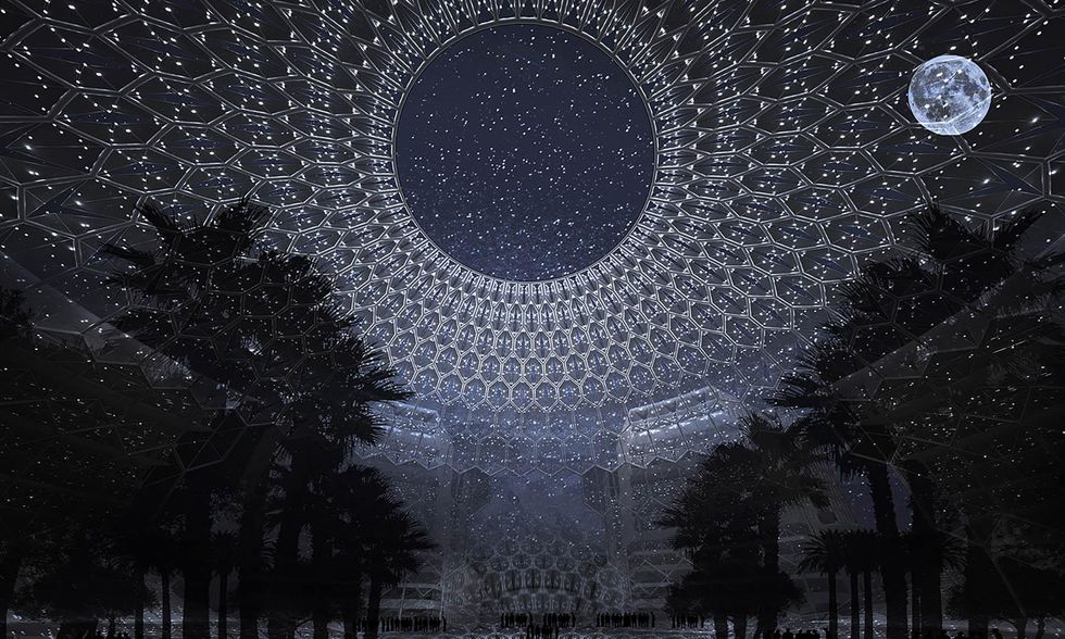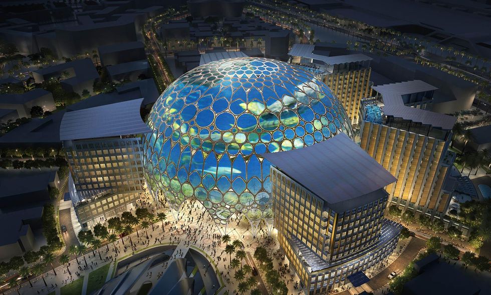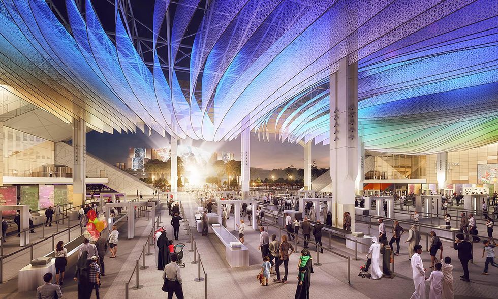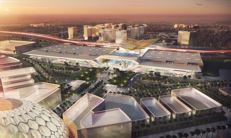 Ecco quello che sappiamo. Il sito, 4 milioni di metri quadri di aerea espositiva, si trova nel nuovo quartiere fieristico denominato Dubai Trade Center - Jebel ʿAli ed è situato nel quadrante sudovest di Dubai e adiacente al nuovo aeroporto internazionale Al Maktum. L'area è posta a circa metà strada tra Dubai e Abu Dhabi che sarà anch'essa interessata dal turismo dell'Esposizione Universale. Il centro del sito è la piazza Al Wasl, denominata con l'antico nome di Dubai, il cui significato è "la connessione". Da essa si diramano, come fossero grandi petali, le tre aree tematiche della manifestazione: opportunità, sostenibilità e mobilità. Ognuna di esse ospita padiglioni tematici nelle fattezze di tradizionali souk arabi. Tra i petali sorgeranno tre tra le più importanti strutture dell'esposizione: il Padiglione di Benvenuto, il Padiglione dell'Innovazione e il Padiglione Uae. All'esterno, invece, ci saranno i padiglioni nazionali, come da tradizione delle Expo. Tutti i viali attorno alle aree tematiche e la stessa piazza centrale saranno ricoperti di tende ricoperte da materiale fotovoltaico che genererà il 50 per cento dell'energia richiesta dall'intero sito espositivo. Le grandi tende saranno inoltre utilizzate durante la notte per proiezioni digitali.