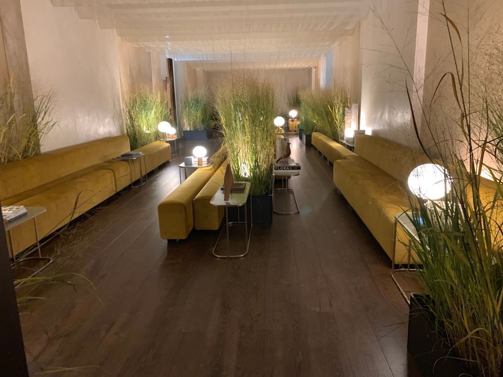 Il viaggio nel Grand Hotel ha inizio con il «garden bar», uno spazio immerso nel verde dove la parola d'ordine è convivialità. Qui la gente può scambiare quattro chiacchiere e sorseggiare un caffè prima di varcare la soglia di Palazzo Morando. La «lounge interna» è il primo ambiente che incontriamo nel percorso espositivo ed è arricchita dalla presenza di graminacee e dalla palette dorata che distingue gli elementi d'arrendo, ricreando l'impressione di un cortile interno con pareti rimate da nicchie. Si prosegue entrando nel ristorante «déjeuner sur l'herbe» dove, sotto le piante è possibile scorgere tre lunghi tavoli dove mangiare insieme. Il menù per colazione e pranzo è stato elaborato con la consulenza del nutrizionista Nicola Sorrentino, per non lasciare nulla al caso. Il ristorante si affaccia inoltre sull'«hortus», un root-giardino sospeso caratterizzati da sfere composte da ortaggi.