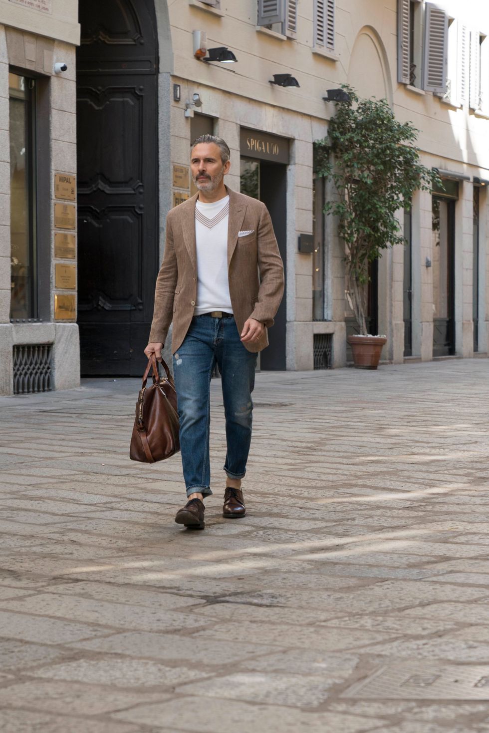 «Facevo il venditore per i negozi, andavo in giro con la macchina come si faceva trent'anni fa a trovare i clienti a casa loro, con la valigia con le mie cose e quindi vivevo in prima persona il contatto negozio-cliente. Oggi gli show room ti permettono di velocizzare gli appuntamenti: in un giorno ne posso fare anche dieci, quando giravo con l'auto potevo farne al massimo tre. Però questa esperienza è stata fondamentale, al punto che mi definisco uomo-prodotto più che designer, cerco di sintetizzare le richieste del mercato interpretandole con il mio gusto e abbinando colori, forme e silohuette in modo da rappresentare la mia visione della moda. Studio la collezione su di me perché penso di rispecchiare l'uomo moderno che conduce una vita normale, spesso viaggia, spesso ha incontri con clienti anche fine giornata e condivide momenti fuori lavoro per parlare di altro. Ragazzi della mia generazione ora sono attenti al vestire, al mangiare, vogliono cose di qualità e vogliono sapere come sono prodotti i capi, i tessuti usati, se rispettano regole di sostenibilità. Sulla base di questi canoni cerco di fare una collezione che abbia sempre grandi contenuti qualitativi. Oggi, pur mantenendo raffinatezza ed eleganza, possiamo permetterci di avere un look meno impostato, un nuovo formale. Eleventy non ha bisogno di loghi. Il nostro cliente è low profile: non vuole far sapere se ha speso 200 o 500 euro per una maglia».