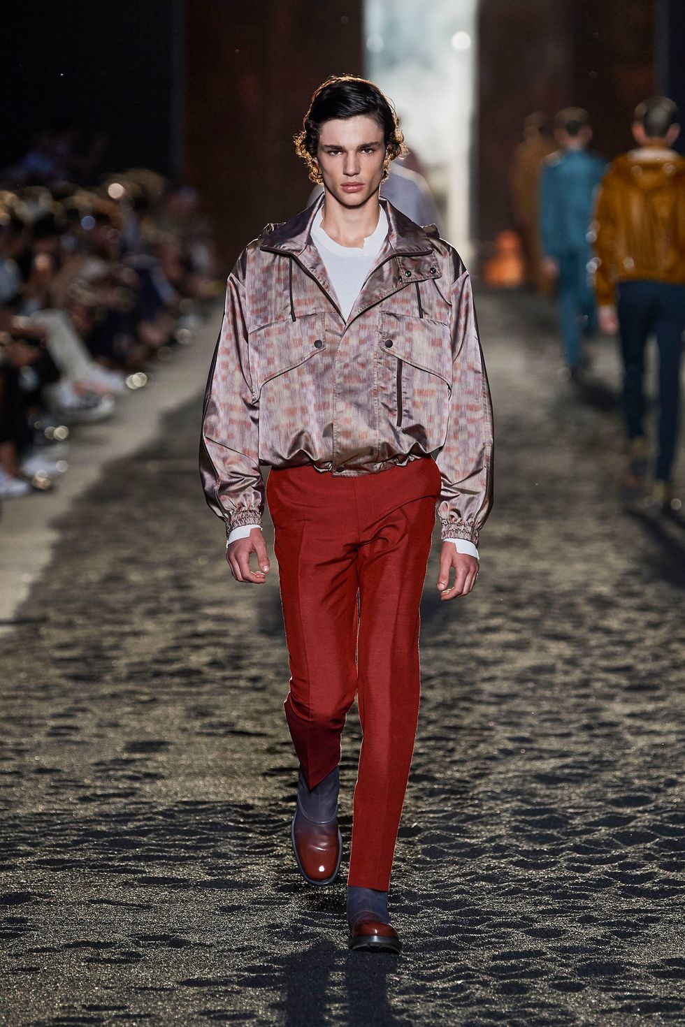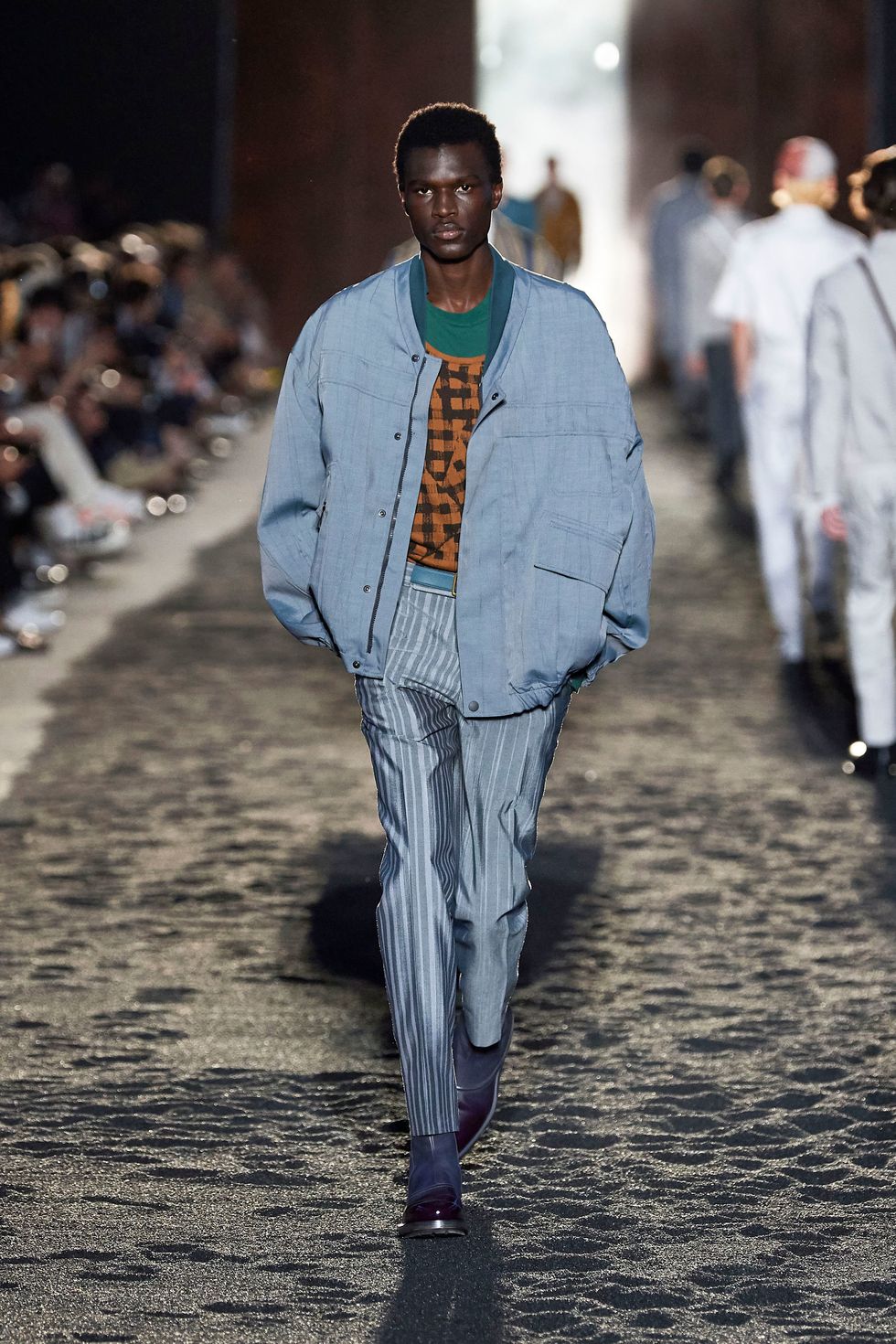 Dal bagno turco poi night club di Pal Zileri si passa al mezzanino della metropolitana della fermata di porta Venezia (perché anche il luogo ha la sua importanza) dove ha sfilato Palm Angels, uno dei marchi streetwear di riferimento, disegnato da Francesco Ragazzi. Tutto parte nel 2014, quando Ragazzi pubblica il libro «Palm Angels», macro fotografie che catturano le evoluzioni degli skater di Venice e Manhattan Beach e il loro legame tra sport e senso dello stile. Successivamente diventa moda sempre presentata in posti di grande impatto. Il vintage alla base, perché in un vintage store si trovano cose conosciute (memorabilia college, pezzi militari, capi atletici, abbigliamento da lavoro, camicie hawaiiane e molto di più) ma con l'impronta di Palm Angels dove lo stilista si sbizzarrisce con ordine unendo tocchi sartoriali con stampe kimono, giacche tecniche in nylon con il denim personalizzato da farfalle. Il denim è anche il materiale d'eccellenza di Dundupche festeggia i vent'anni dalla nascita. Tra le novità due limited edition: cotone e canapa dal sapore autentico e una tela di cotone organico ed elastan riciclato dallo stile sartoriale. Entrambe all'insegna di una sempre maggiore consapevolezza e rispetto per l'ambiente. È un viaggiatore l'uomo di Tod's, sempre su due ruote (bici o moto che sia)attraversa il mondo con la sua Ride Jacket e con la sicurezza del suo stile.Pelli e nylon quasi senza peso, stampe digital-camouflage, denim sartoriali e morbidissimi suede sono materiali e lavorazioni con cui sfidare ogni vento e qualunque strada, accompagnati dalla trasversalità delle loro funzioni.