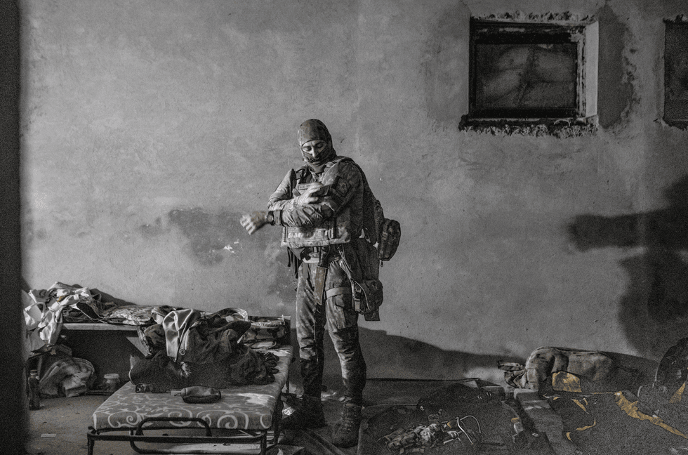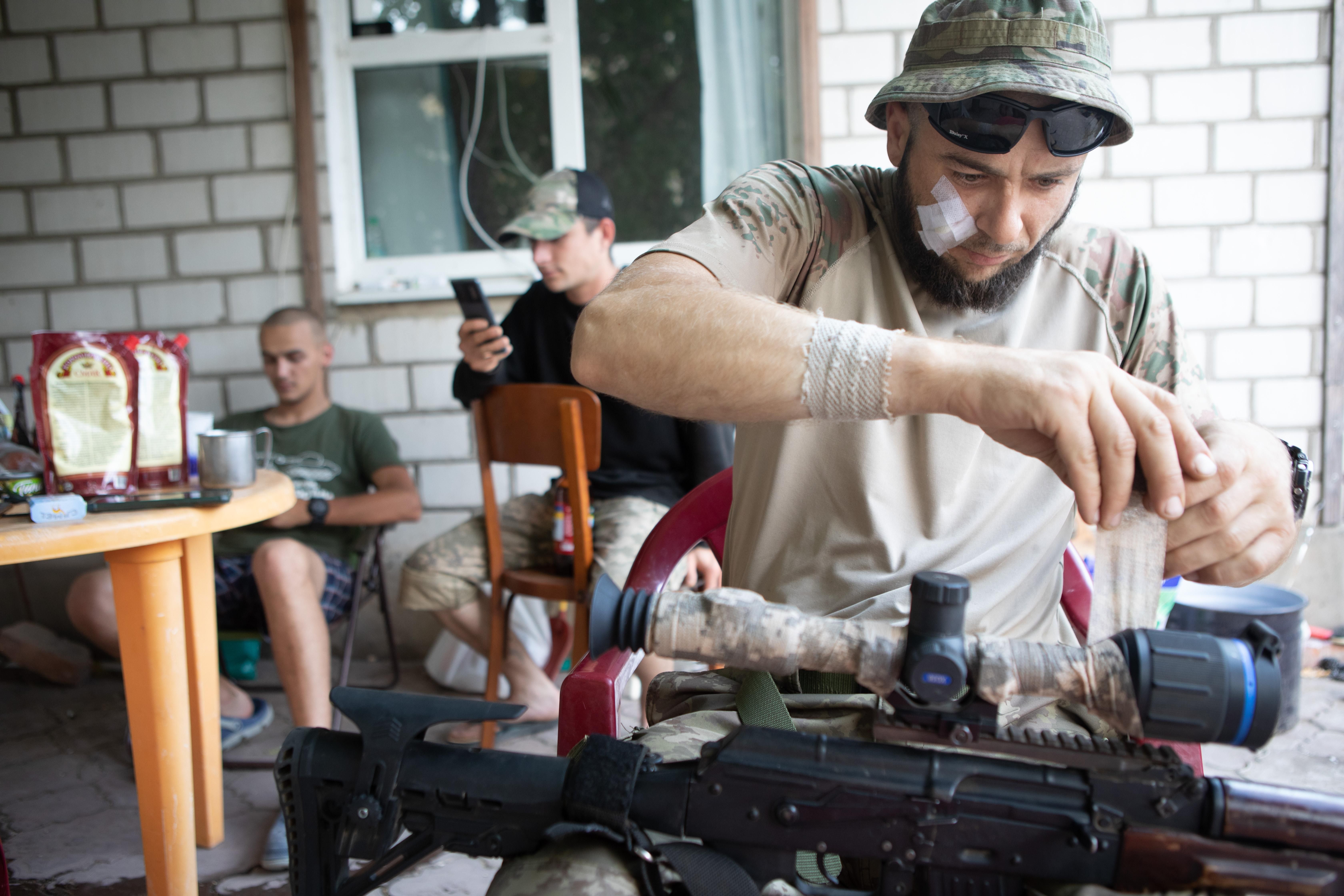 Le pareti sono protette da vecchie coperte e sotto come pavimento dei pallet di legno e dei cuscini di un vecchio divano, intorno attaccato a dei chiodi ci sono gli zaini con l’equipaggiamento medico, il fucile, il giubbetto e le munizioni. «La mia famiglia», racconta, «non sapeva niente fino a 15 giorni fa, per mesi sono riuscita a far pensare a mio marito e a mia figlia, che si trovano a Malta dall’inizio della guerra, che stavo facendo la volontaria come civile a Kiev e in altri posti. Ma qui la situazione è difficile, non sapevo più come giustificare il fatto che non avessi linea e poi nelle volte in cui riuscivo a parlare al telefono sentivano i rumori delle bombe intorno. Gli ho dovuto dire dove sono e cosa faccio e ora sono tutti contro di me, dicono che devo rientrare e smetterla di mettere la mia vita in pericolo ma io non lascerò mai i miei concittadini fino a quando non finirà la guerra».