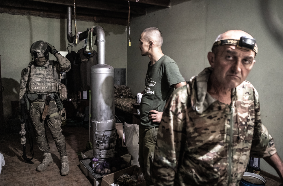 «Un altro grosso problema è il tipo di terreno con cui abbiamo a che fare», ci racconta Victoria. «Qui il terreno è argilloso, a parte i primi centimetri, poi si fa durissimo, così le pareti delle trincee reggono facilmente ma poi diventano piscine quando piove e ci troviamo spesso con i piedi nell’acqua, non voglio pensare ai ragazzi sulla linea zero, loro vivono in condizioni al limite, questa posizione in confronto è un hotel. In genere comunque la maggior parte del tempo la passiamo fuori dal bunker, nella cucina da campo che nel tempo è diventato come un salotto al fronte, se arriva una bomba saltiamo tutti nelle buche altrimenti siamo sempre intorno al fuoco a cercare di distrarci e passare il tempo. La nostra vita» , continua, «scorre aspettando una chiamata alla radio che ci dirà dove andare o chi sta arrivando, la maggior parte dei soldati viene portato qui dai propri compagni, spesso andiamo loro incontro a piedi, ma con l’equipaggiamento che abbiamo non possiamo spingerci a più di un chilometro nella loro direzione, a metà strada circa dal fronte, sopratutto io che sono piccolina e peso poco più di 45 kg, non riesco a fare più di un chilometro. Inoltre noi non possiamo andare troppo vicino alle ultime trincee, dobbiamo restare in vita per salvare le vite degli altri».