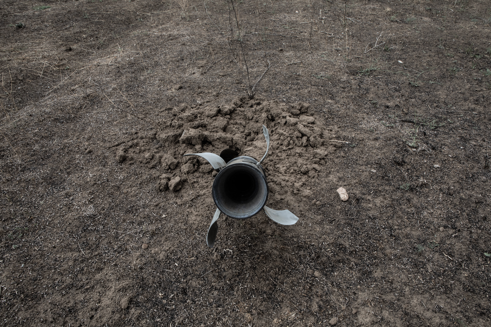 In questo bunker effettivamente ci si sente al sicuro anche se sappiamo benissimo che è solo una sensazione, perché un missile sopra la nostra postazione farebbe diventare questo posto un unico grande cratere, è quindi un posto che ti protegge dalle schegge, e dai piccoli ordigni che vengono lanciati con i droni o dalle letali bombe a grappolo che qui, anche se vietate dalle convenzioni dell’Onu, vengono lanciate in quantità massicce.