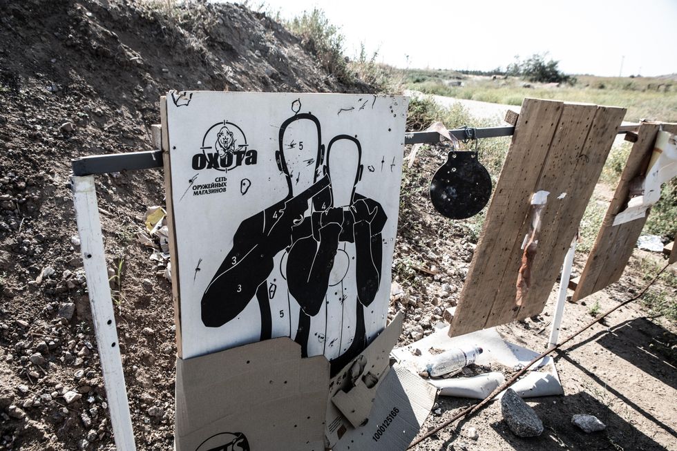 Victoria vuole farci vedere il suo cane, quello che si è portato da casa, con cui sta facendo tutta la guerra fianco a fianco. Usciamo dal bunker e fuori che ci aspetta seduta c’è Aia, una grande cagnolina nera bellissima che segue perfettamente tutti i comandi della sua padrona. «In terra, seduta, gira su te tessa, dai la zampa!». Victoria ci fa vedere come ha addestrato il cane e ci racconta di come ha dovuto insegnargli a trovarsi un riparo da solo nel caso in cui arrivi una bomba, perché qui purtroppo non c’è il tempo di mettere in salvo qualcun’altro. Le chiediamo dove abbia imparato a fare questo mestiere e lei sorride ancora guardandoci. «Io sono un veterinario, ho studiato medicina generale prima e poi veterinaria, questo lavoro qui al fronte è tecnicamente più facile, fare una tracheotomia, un massaggio cardiaco, una sutura e sopratutto capire il tipo di trauma su cui intervenire velocemente è più facile che in clinica a Kiev. I soldati feriti o i loro compagni parlano, gli animali no».