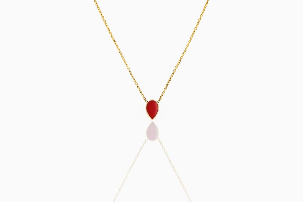 Una goccia di paradiso. La nuova collana firmata Atelier Vm racchiude tutta la poesia di questo brand italiano. Disponibile in tre misure - 38, 40 e 42 cm - la collana è prodotta in oro giallo 9kt e presenta una goccia di colore rosso, smaltato a mano nella città di Napoli. Si chiama collana Ibiza e racchiude tutta la bellezza e la passione di quest'isola da sogno.