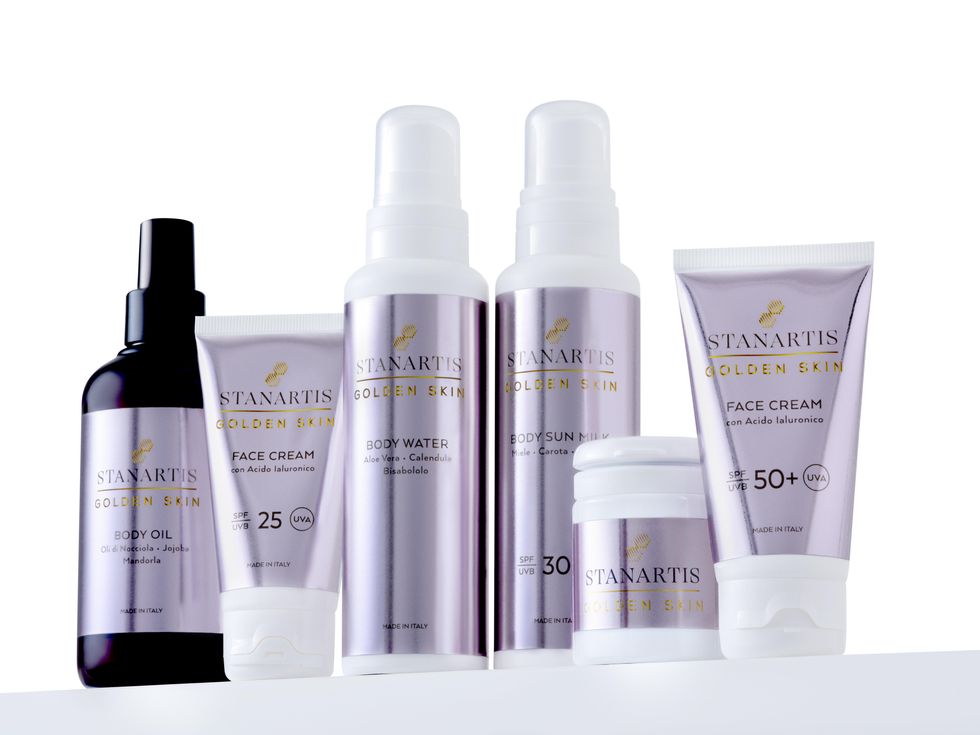 Stanartis, nuova realtà italiana nel mercato della cosmesi fondata su attenti studi medici, ha ideato l’olio Golden Skin, dedicato alla pelle e ai capelli, per proteggere e sublimare l’abbronzatura. L’olio di mallo di noce stimola infatti la produzione di melanina in modo naturale e la sinergia delle proprietà nutrienti dell’olio di jojoba e quelle emollienti ed elasticizzanti dell’olio di mandorle dolci rendono pelle e capelli morbidi e idratati.