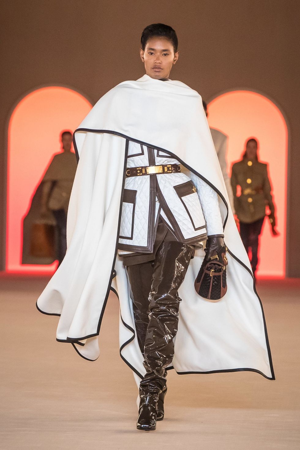 Durante le ultime passerelle, il latex è tornato nelle capitali della moda, grazie a Saint Laurent Paris, Balmain e l’inglese Richard Quinn. Parte del gruppo di «genius» scegli da Remo Ruffini per Moncler, Richard Quinn ha sbalordito tutti aprendo la sua sfilata con un uomo e una donna con il volto incappucciato con maschere incontrate di perle e cristalli. Il latex ha così avvolto le braccia, le gambe e a volte persino il volto delle modelle, diventate una vera e propria tela su cui mostrare i suoi abiti sgargianti.
