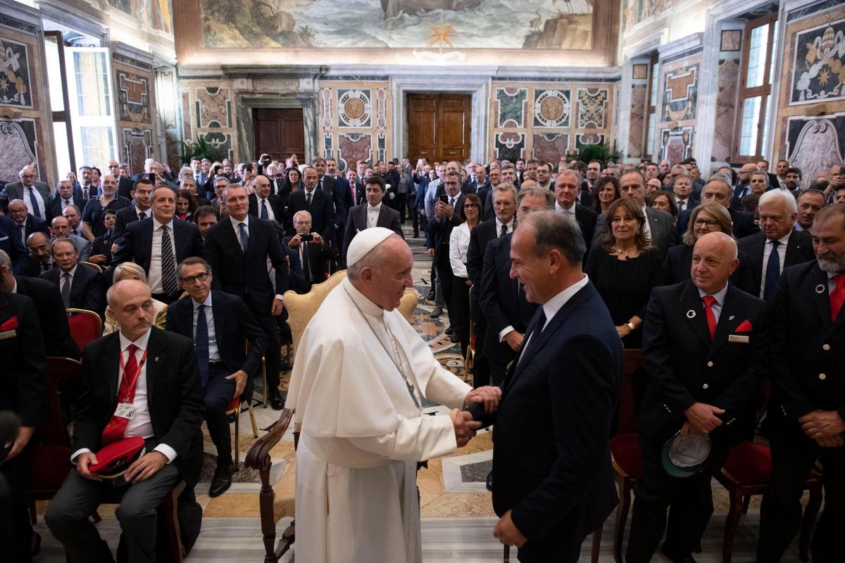 Bergoglio incontra lavoratori e dirigenti Fs e benedice la Tav: «Opera strategica». Nel 1979 invece Wojtyla parlò loro di Gesù.