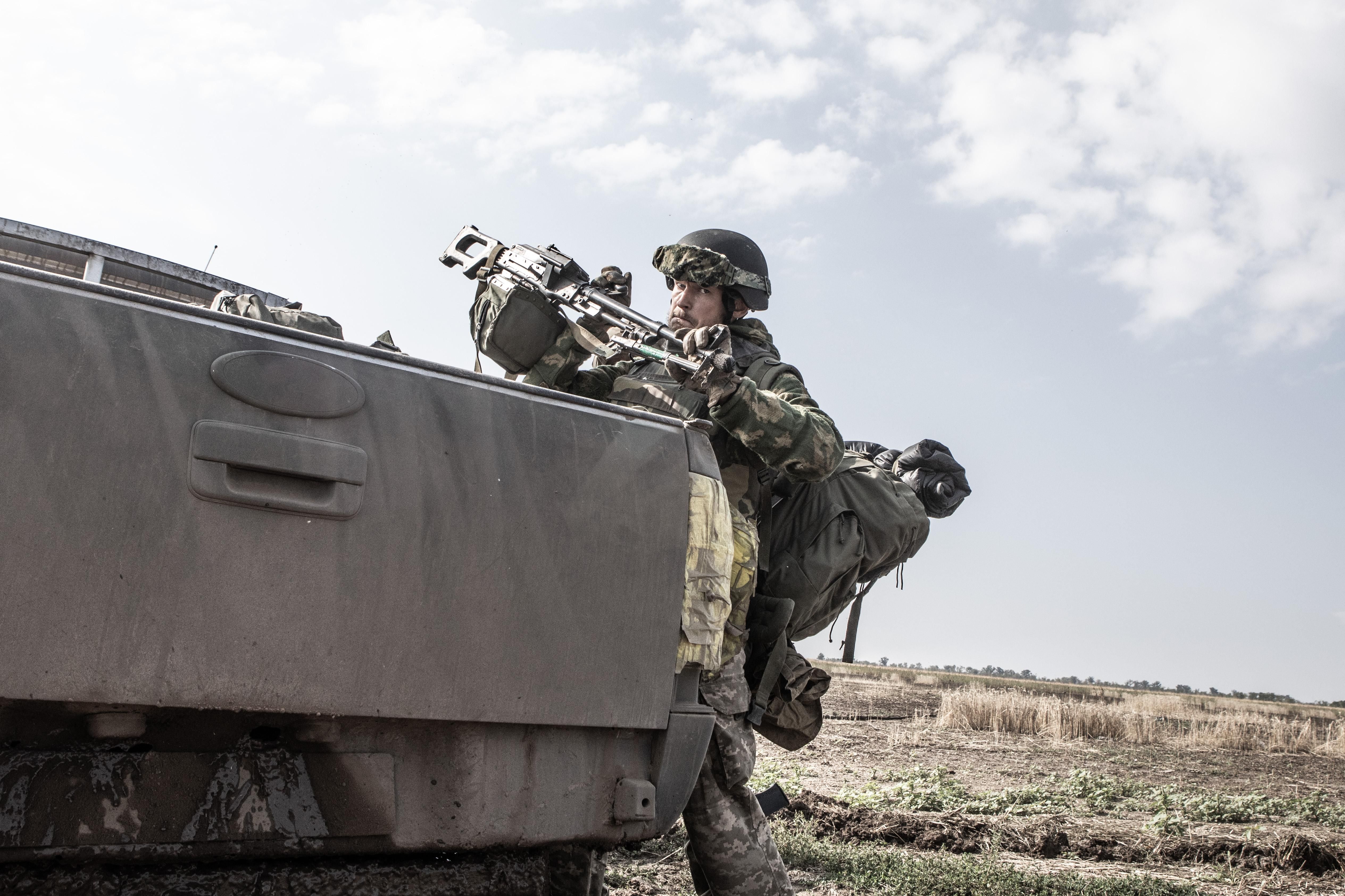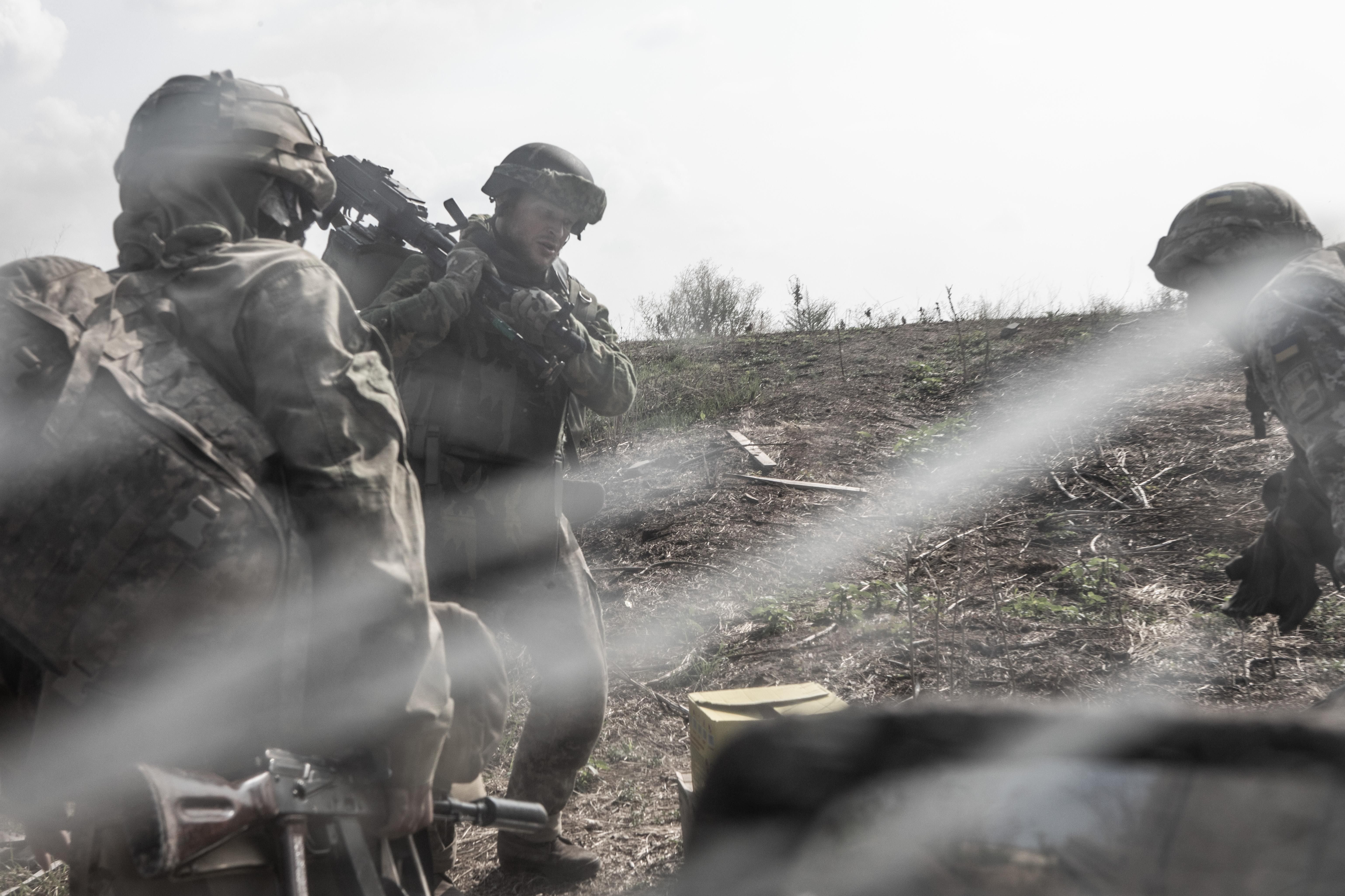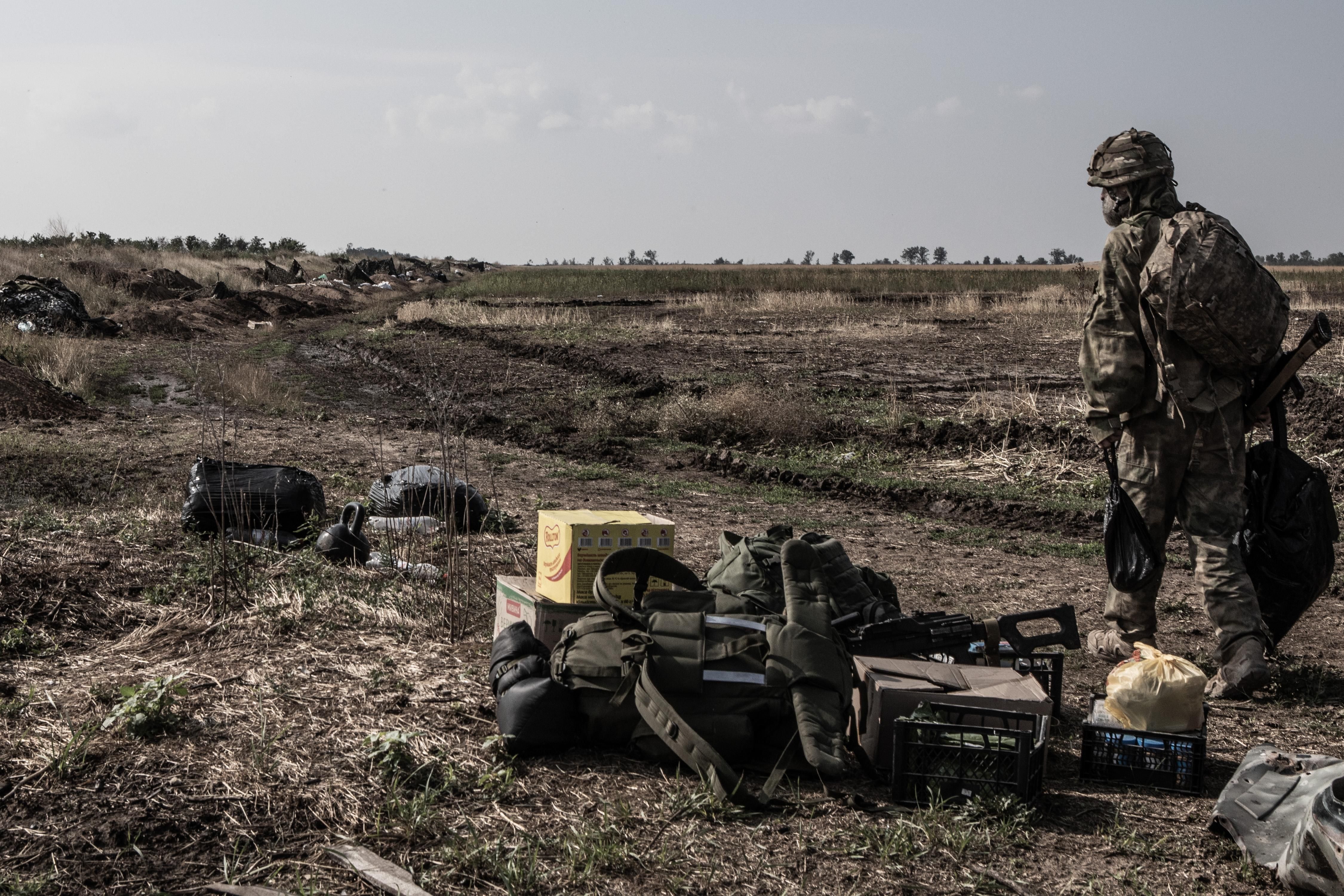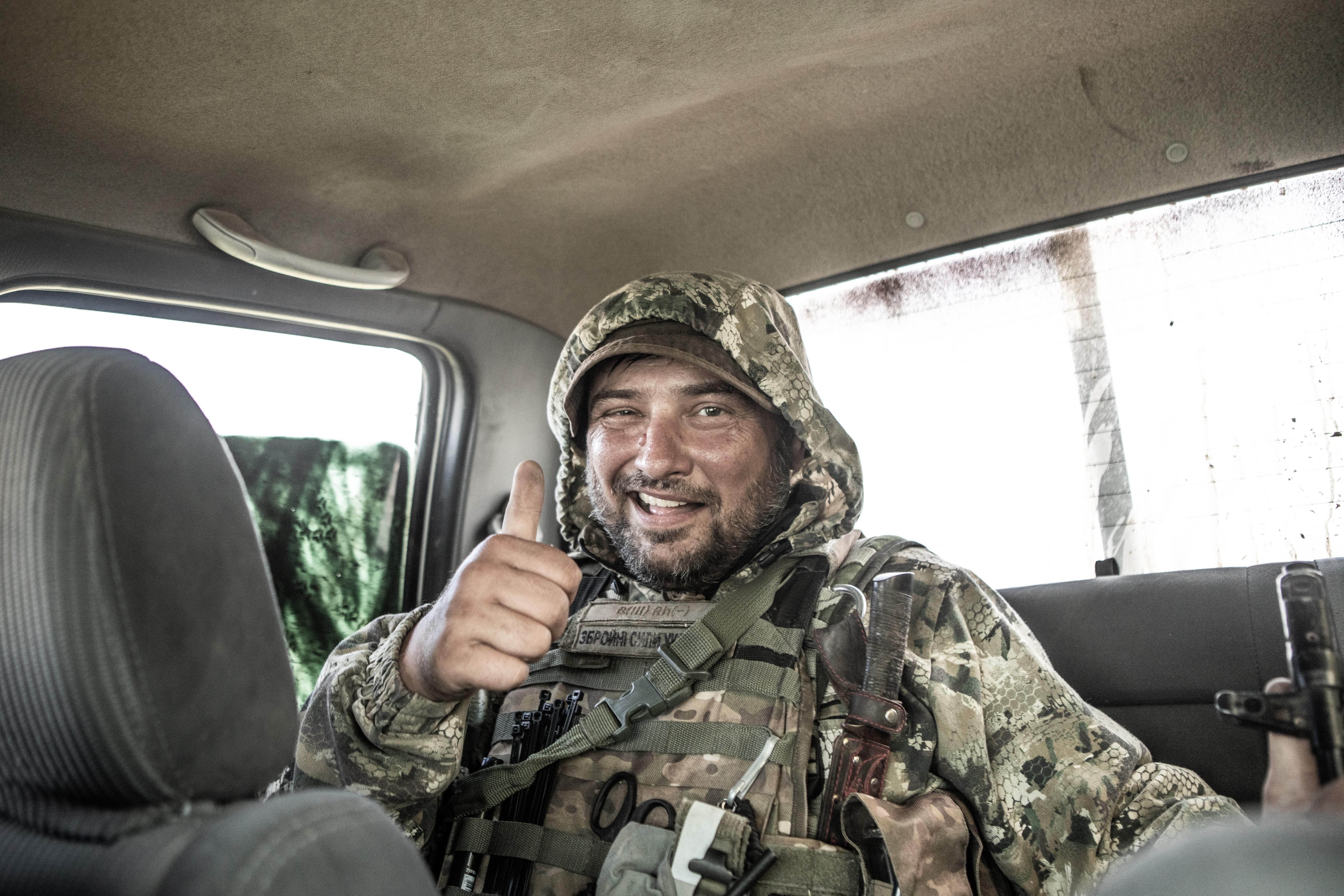 Montiamo sulla jeep che porterà il cambio alle trincee. Costeggiamo i campi di grano e con noi ci sono i tre soldati che passeranno i prossimi giorni faccia a faccia con i russi. Saranno a un tiro di mitragliatore, di fucile, di bomba a mano. Nelle trincee della linea Zero si può sentire il rumore dei carri russi a poche centinaia di metri. Le condizioni igieniche e di combattimento sono le stesse già viste nella guerra in Vietnam. Gli occhi di questi tre ragazzi cambiano a mano a mano che ci avviciniamo alla meta. Li lasciamo a circa un chilometro dalla linea Zero. Da qui proseguiranno a piedi. Le macchine vengono intercettate dai droni e sarebbe un suicido andarci con un mezzo. Quelle sono anche le postazioni dove, in caso di attacco o di difesa, si procede a piedi, con la baionetta innestata come in Vietnam e, ancor prima, nella seconda guerra mondiale.