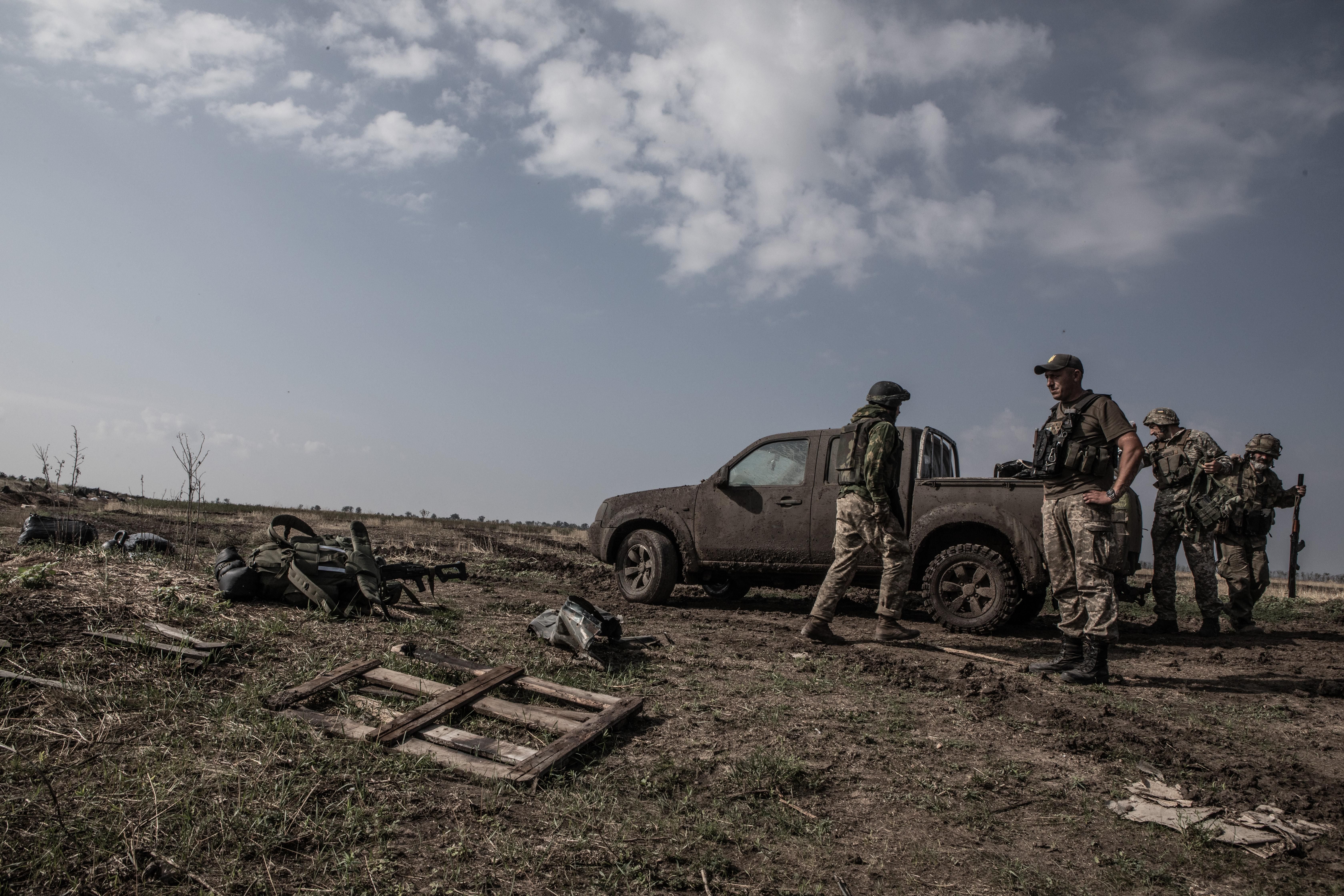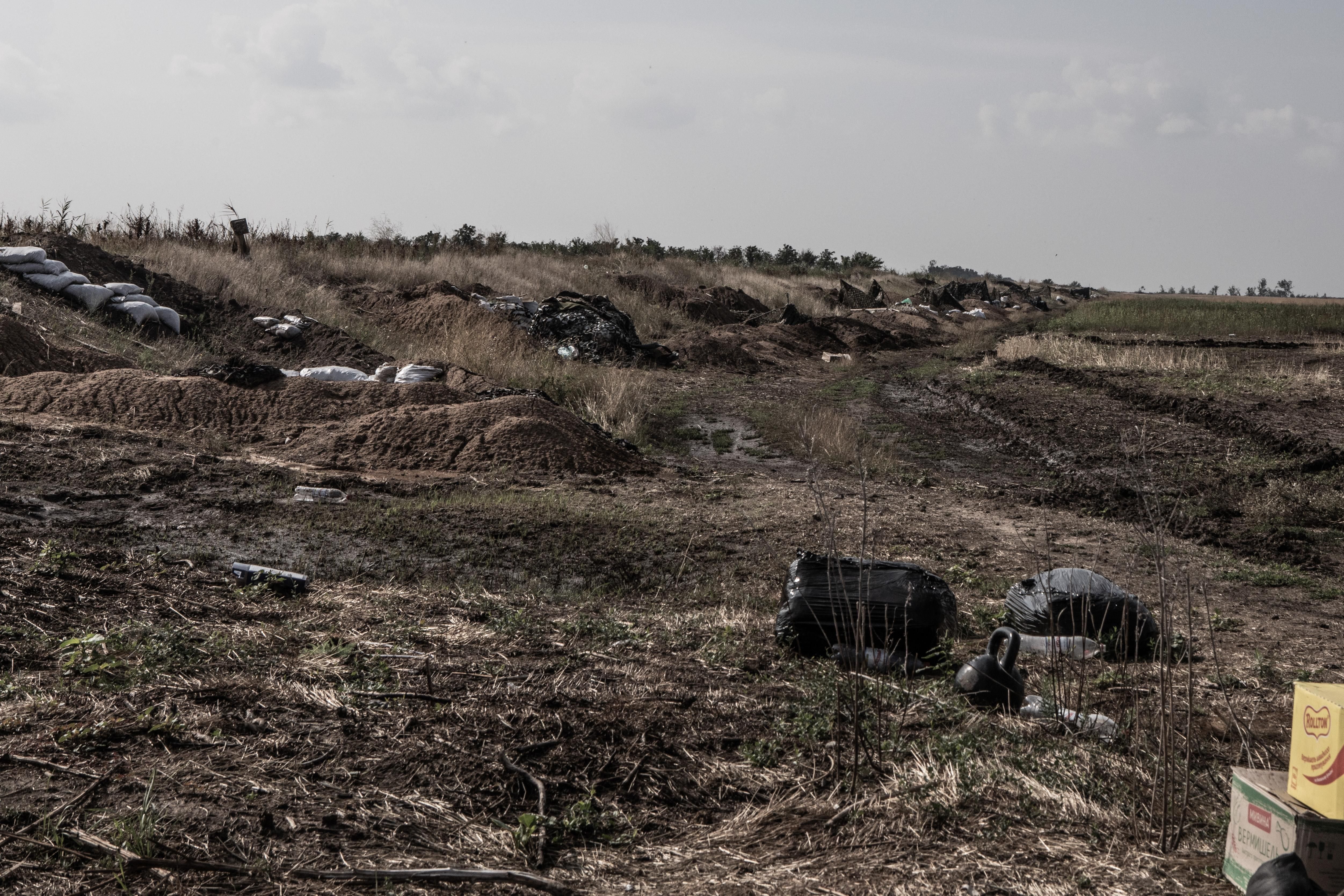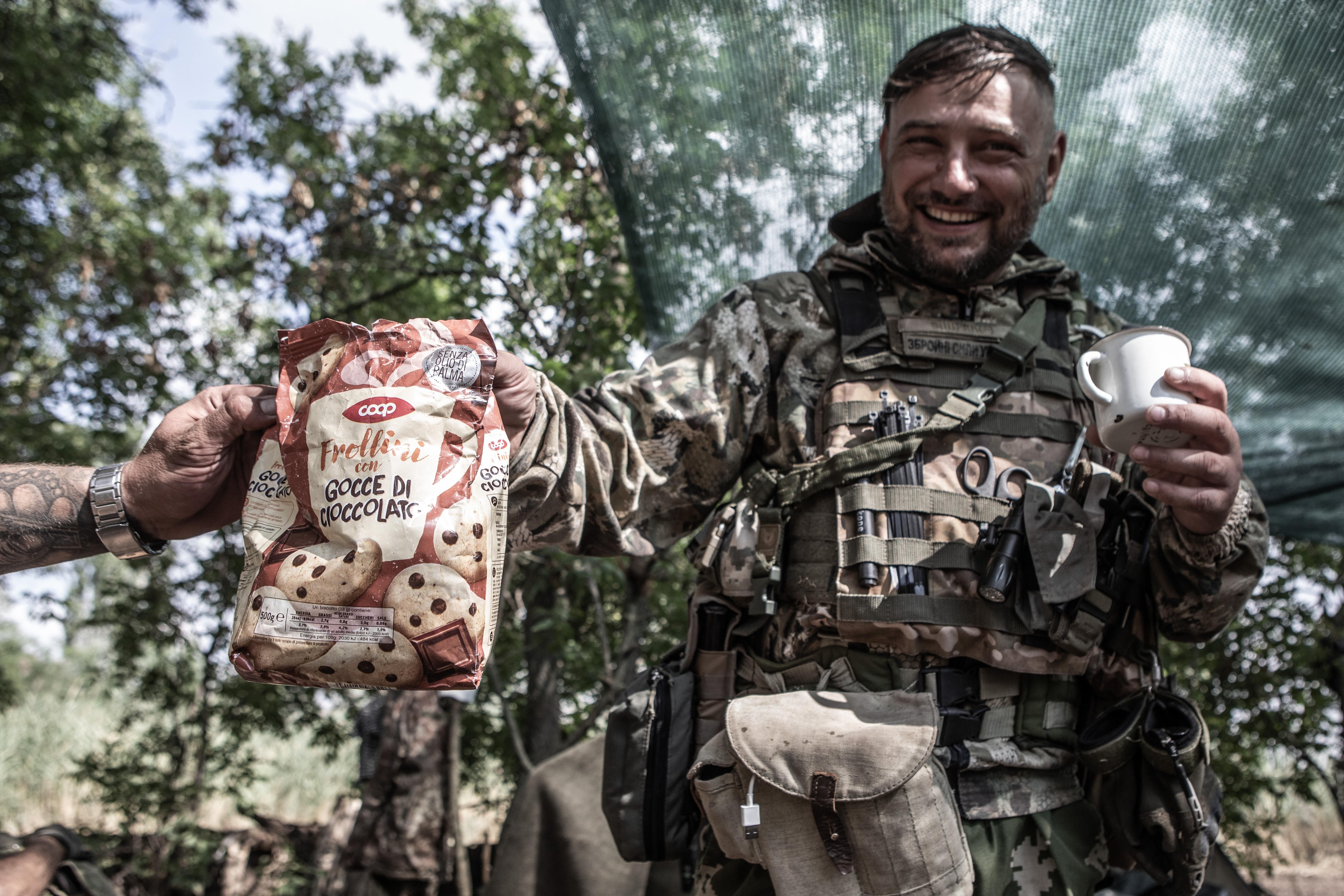 Ci spiegano che, in questo momento, hanno l’obbligo di tenere a tutti i costi le posizioni. L’ordine è venuto direttamente dal comando generale. Gli ucraini hanno occupato delle trincee russe guadagnando terreno metro dopo metro, circa un mese fa, e non devono indietreggiare di un singolo centimetro. Il comandante ci confida: «Siamo qui e teniamo duro ma i russi, con i loro droni, ci lanciano addosso piccoli ordigni, e subito dopo l’artiglieria spara sulle nostre postazioni. Ci rintaniamo sotto terra e un po’ per fortuna un po’ per la loro imprecisione siamo ancora vivi». E aggiunge: «Questo accade tutti i giorni e quando non ci sparano i russi dobbiamo fare i conti con il caldo, la polvere, i serpenti che scendono nelle nostre buche». Il racconto termina presto. È ora di muoverci.