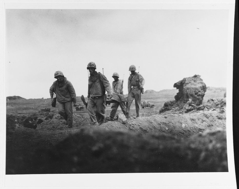 Il 19 febbraio 1945 iniziò lo sbarco americano. La resistenza giapponese fu estrema e la vittoria, fissata nella famosa immagine dei Marines che issano la bandiera Usa (che è in realtà una replica) costò oltre 26mila morti.