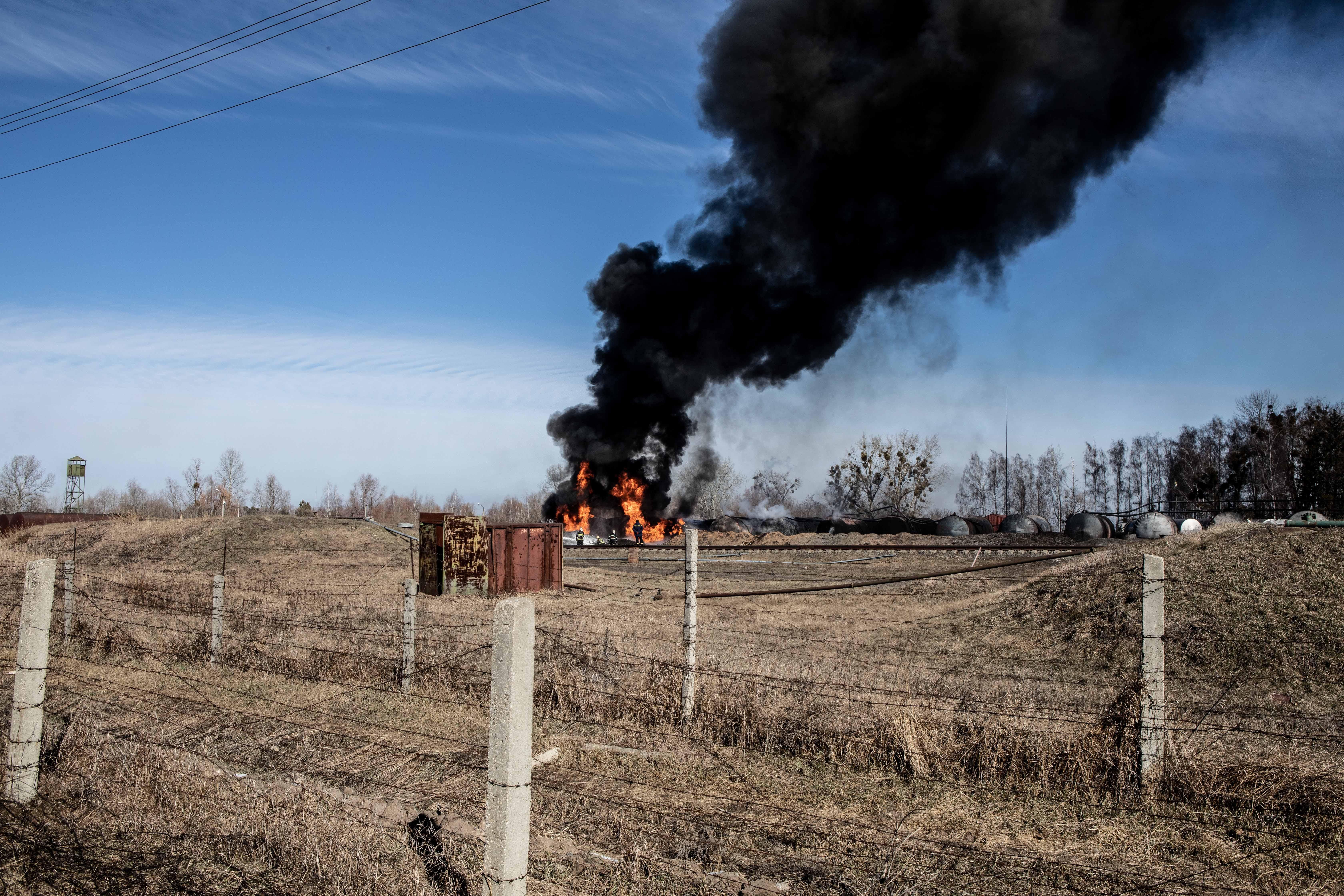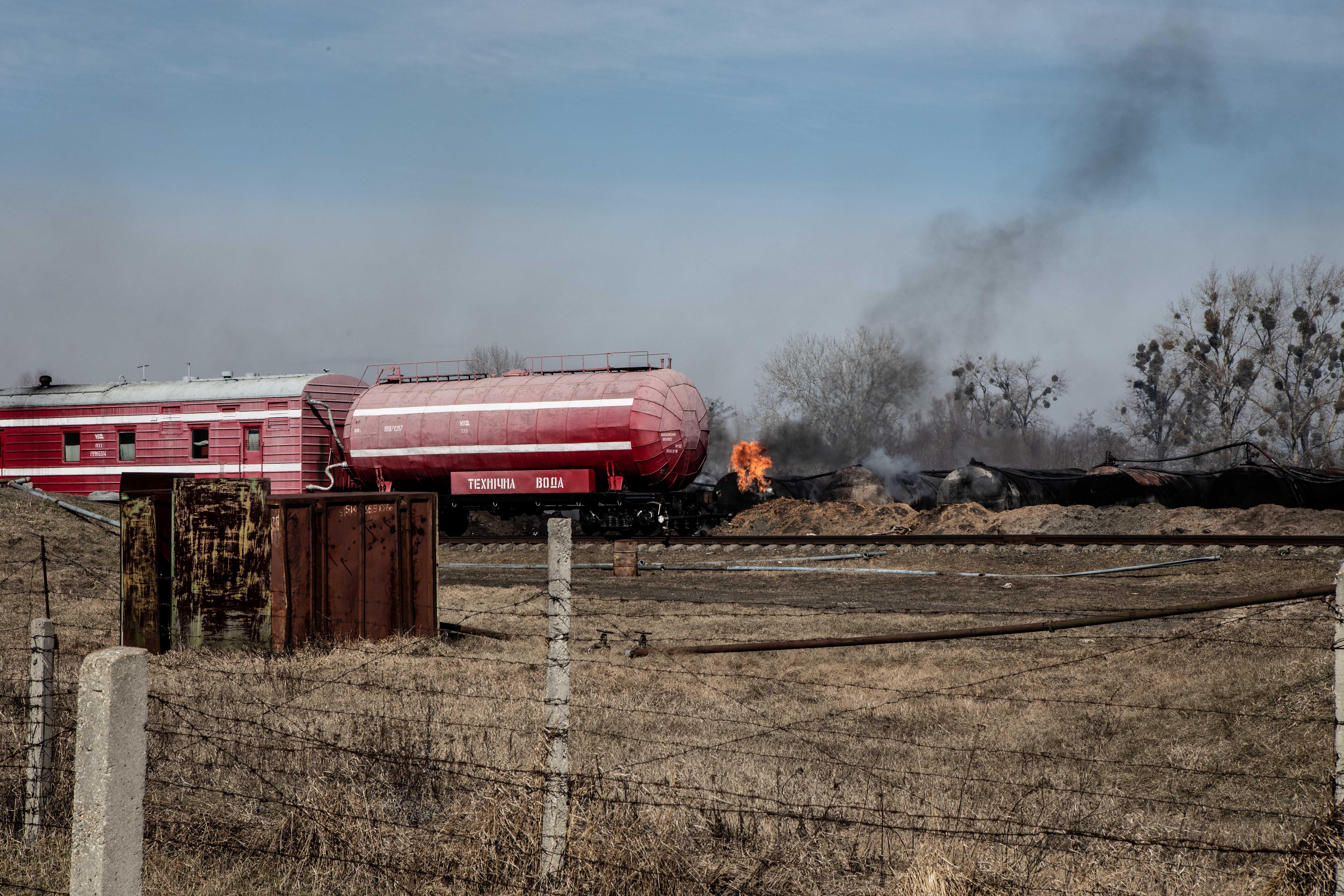 Siamo andati ancora una volta a verificare la situazione sulla prima linea di Irpin dove siamo stati nei giorni scorsi e poi verso Ovest, dove in una base militare i missili russi hanno distrutto un deposito di benzina, uno di munizioni e la pista dell’aeroporto.