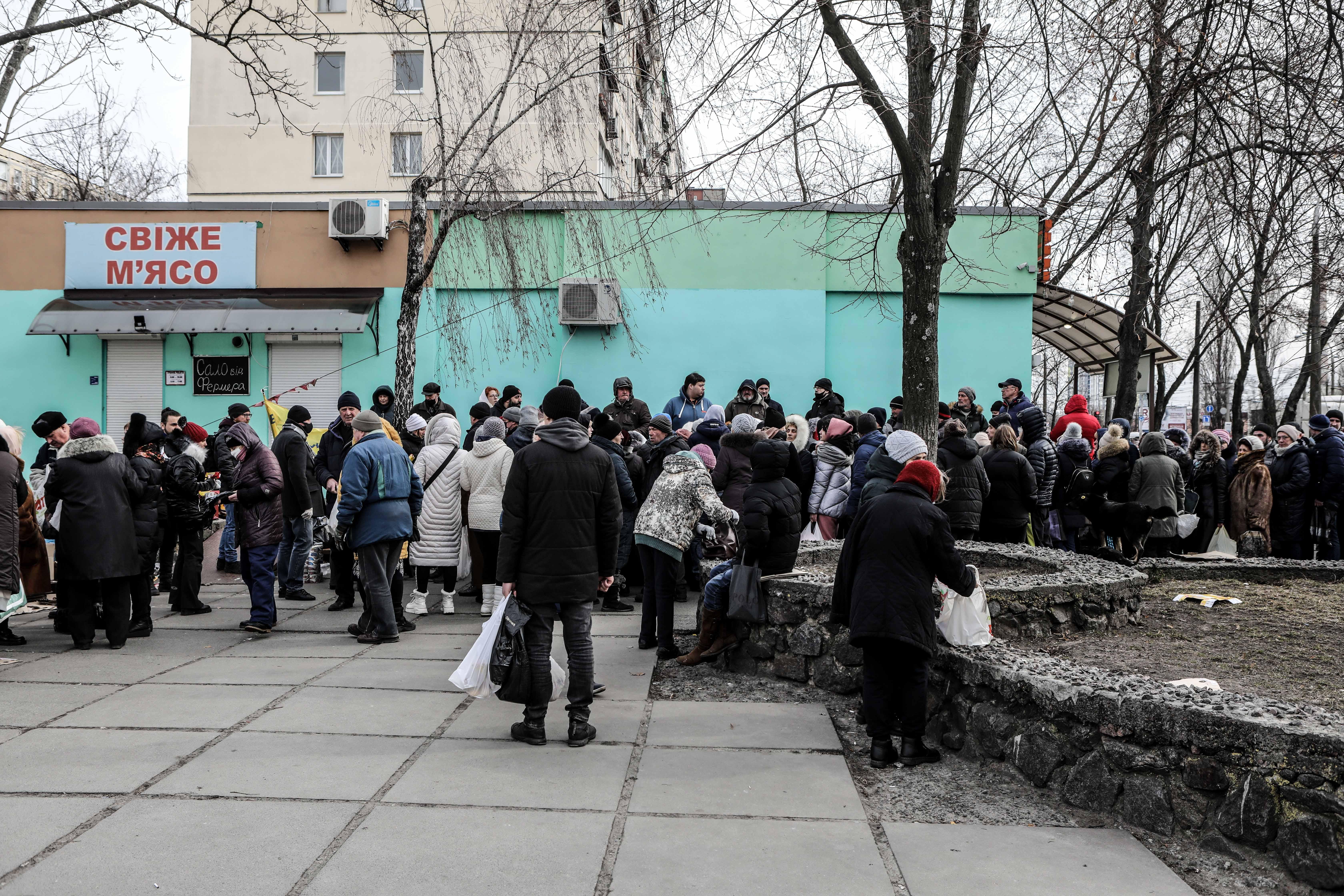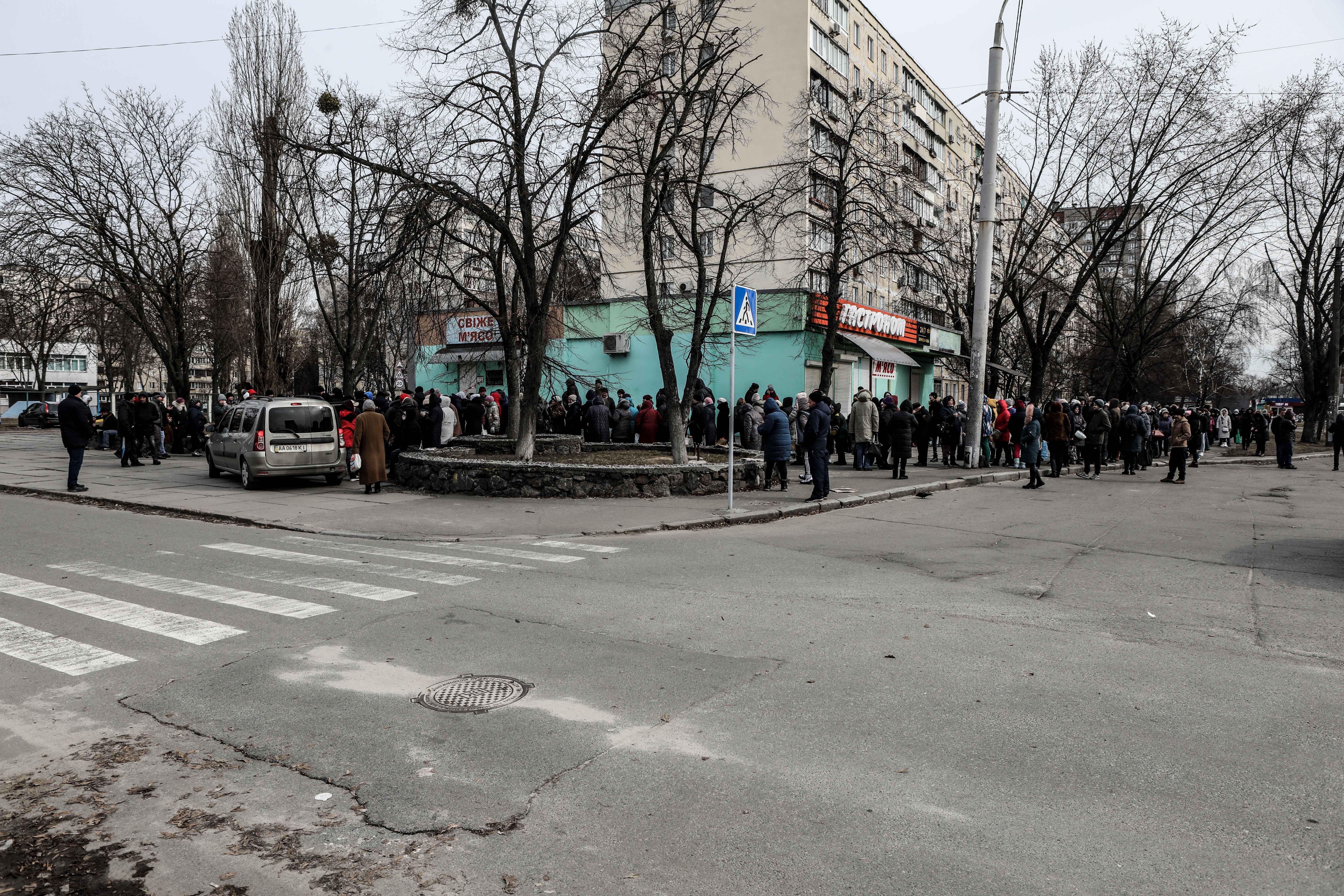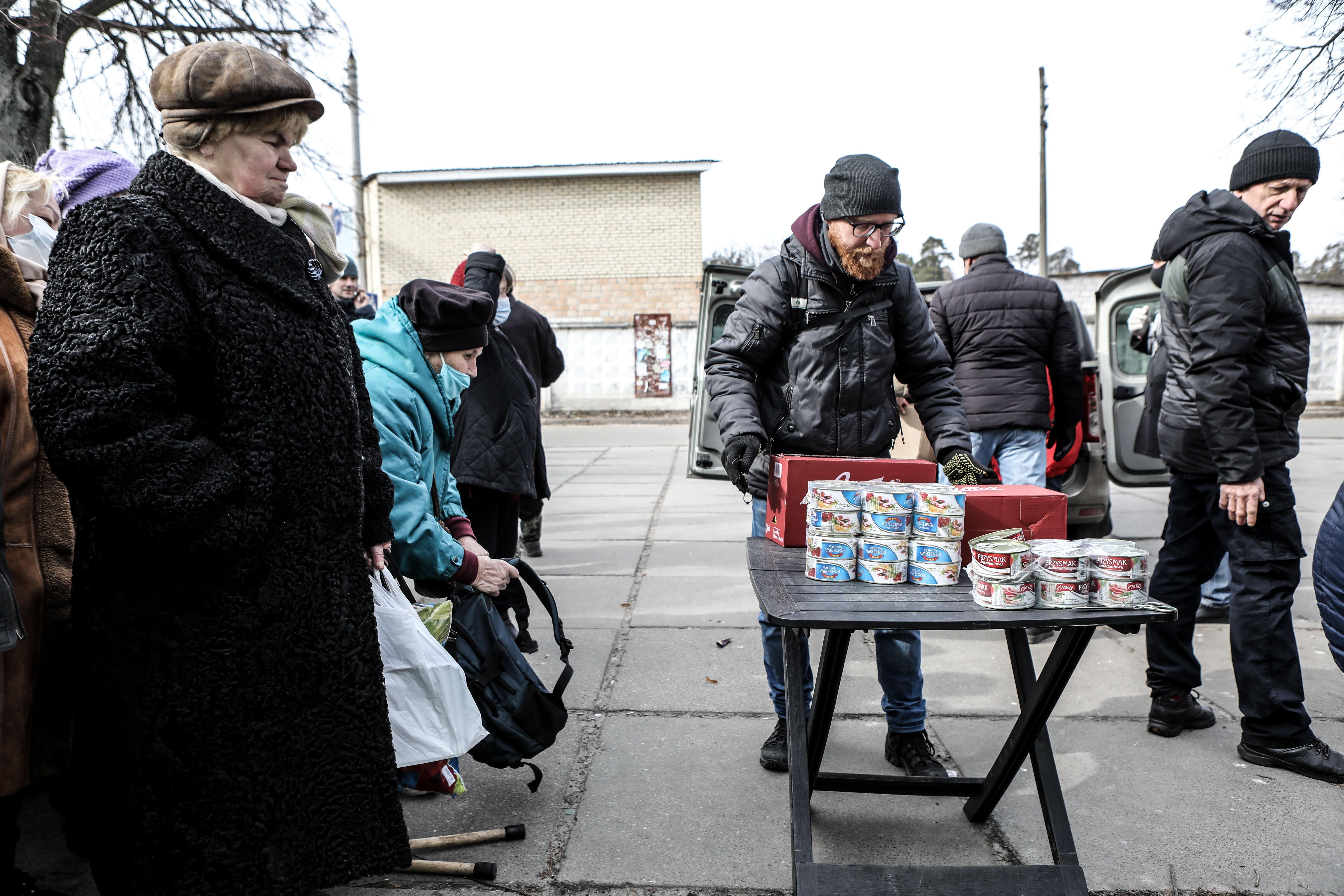 James scatta le sue foto e scruta la colonna di fumo nero denso. Cerchiamo di commentare con lui la notizia che Putin sta mandando in Ucraina «volontari» che provengono del Medio Oriente. Lui si gira e ci sentenzia: «È la terza guerra mondiale». Speriamo si sbagli, ma mentre torniamo a Kiev quelle parole ci rimbombano nella mente come se fossero una cupa profezia. Anche perché è chiaro che la situazione sta precipitando. Quando torniamo nella capitale assistiamo a un’altra scena che non avevamo ancora visto qui, dove tra l’altro - e incredibilmente - ci sono ancora acqua, elettricità e connessione per i cellulari e Internet. In un quartiere a Sud della città si formano le prime file per i viveri che ormai iniziamo a scarseggiare. Una coda ordinata e dignitosa che nel giro di mezz’ora diventa un serpentone di persone in attesa di un sacchetto con un pacco di biscotti, della frutta e una scatoletta di carne. È qui la guerra.
