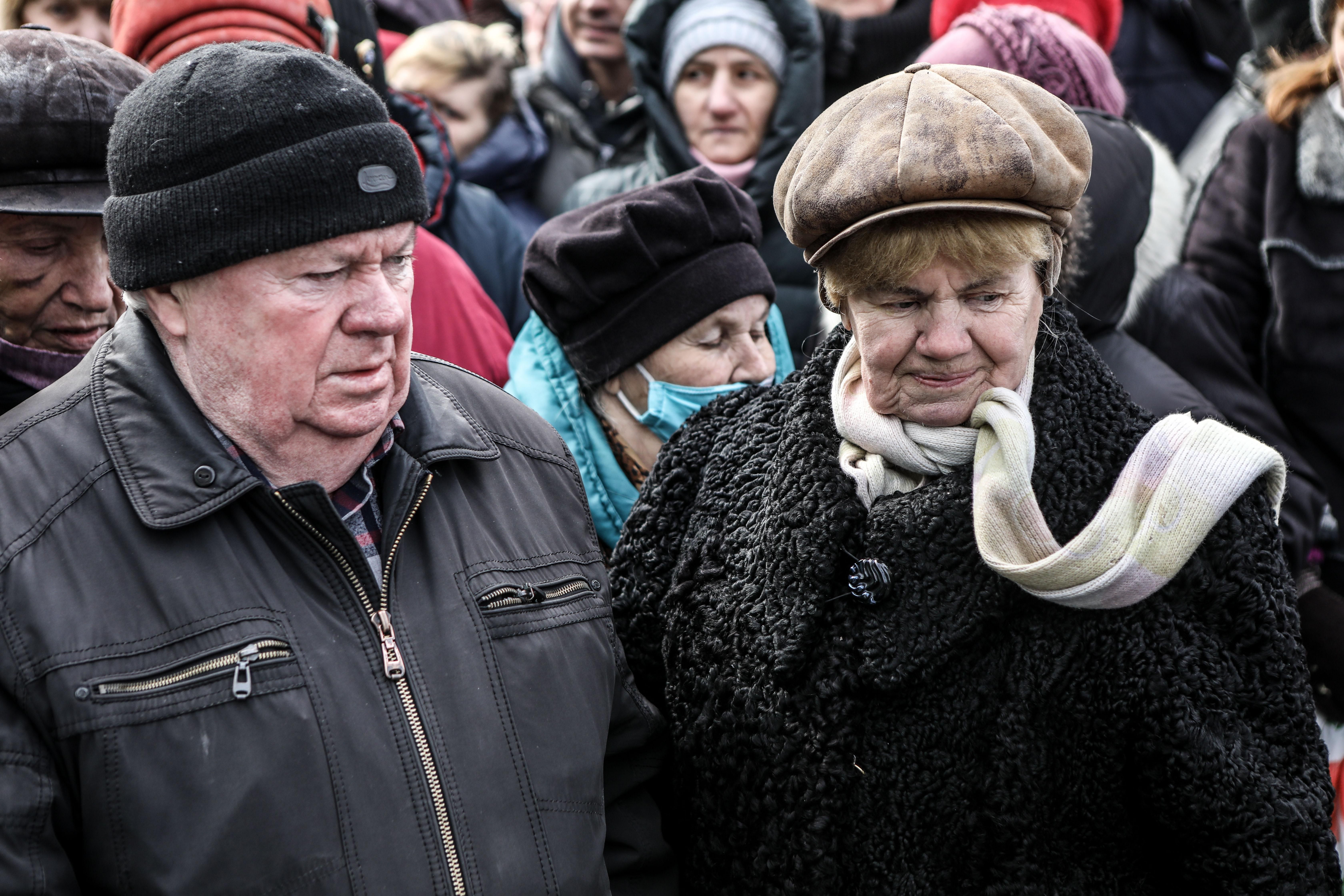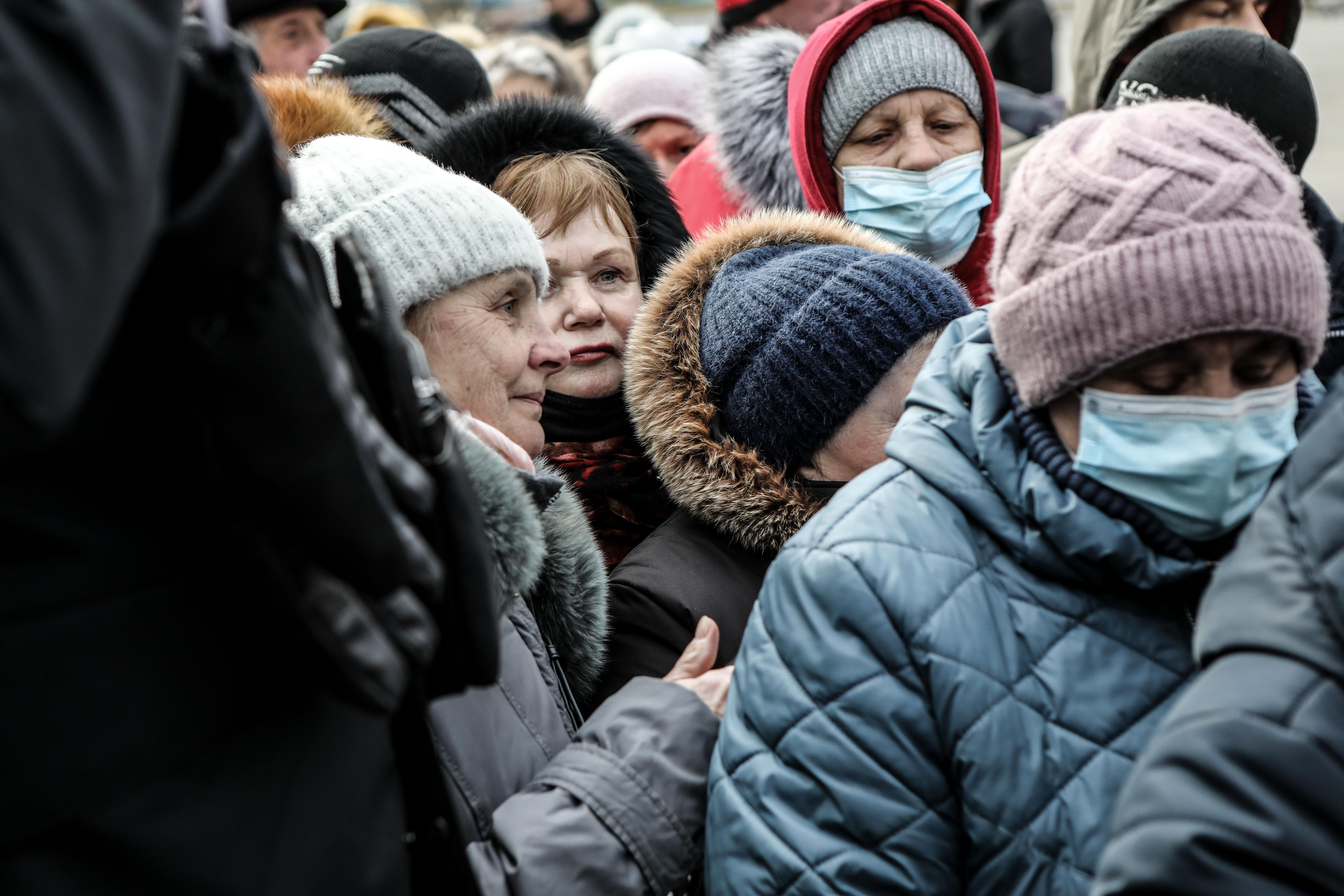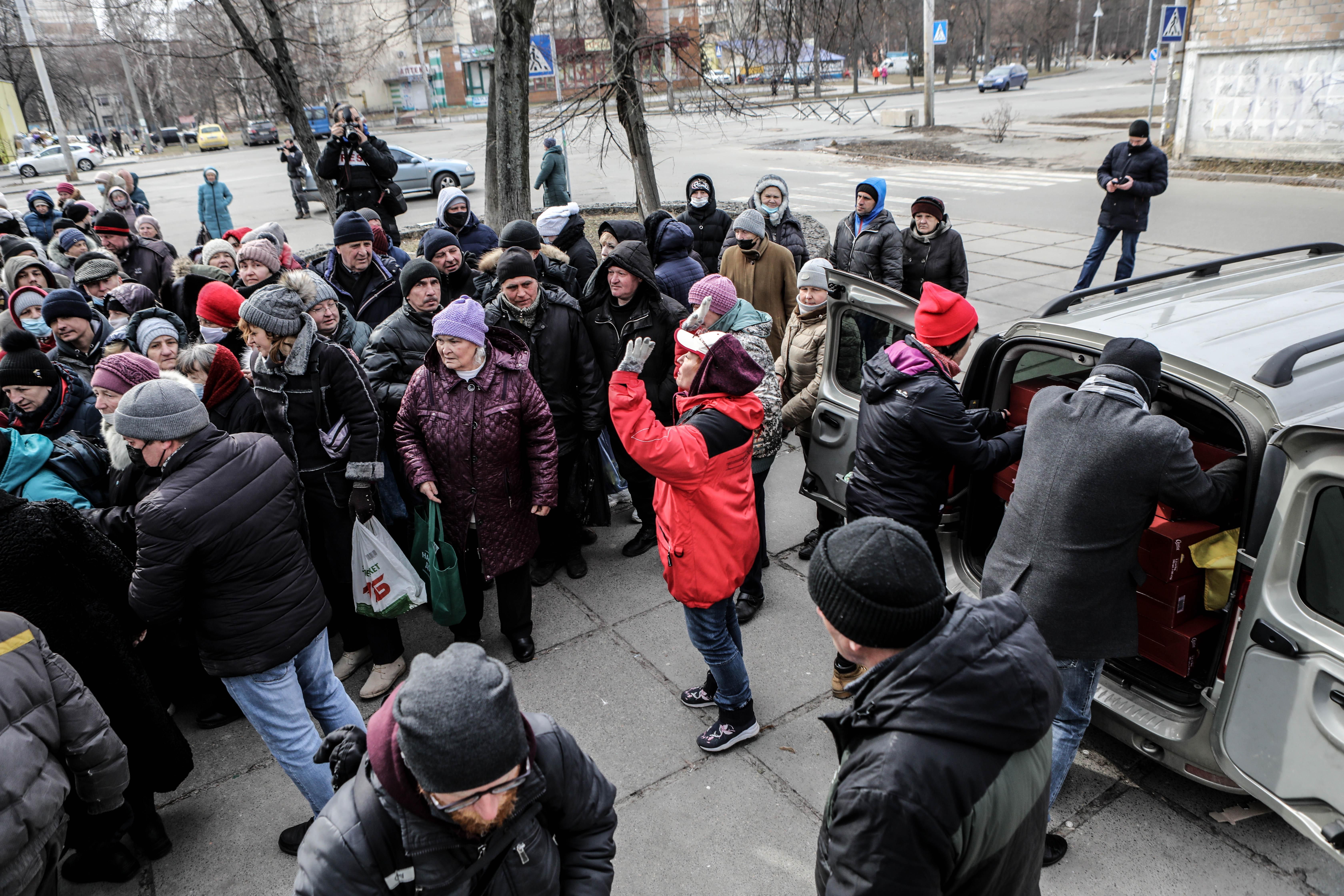 James scatta le sue foto e scruta la colonna di fumo nero denso. Cerchiamo di commentare con lui la notizia che Putin sta mandando in Ucraina «volontari» che provengono del Medio Oriente. Lui si gira e ci sentenzia: «È la terza guerra mondiale». Speriamo si sbagli, ma mentre torniamo a Kiev quelle parole ci rimbombano nella mente come se fossero una cupa profezia. Anche perché è chiaro che la situazione sta precipitando. Quando torniamo nella capitale assistiamo a un’altra scena che non avevamo ancora visto qui, dove tra l’altro - e incredibilmente - ci sono ancora acqua, elettricità e connessione per i cellulari e Internet. In un quartiere a Sud della città si formano le prime file per i viveri che ormai iniziamo a scarseggiare. Una coda ordinata e dignitosa che nel giro di mezz’ora diventa un serpentone di persone in attesa di un sacchetto con un pacco di biscotti, della frutta e una scatoletta di carne. È qui la guerra.