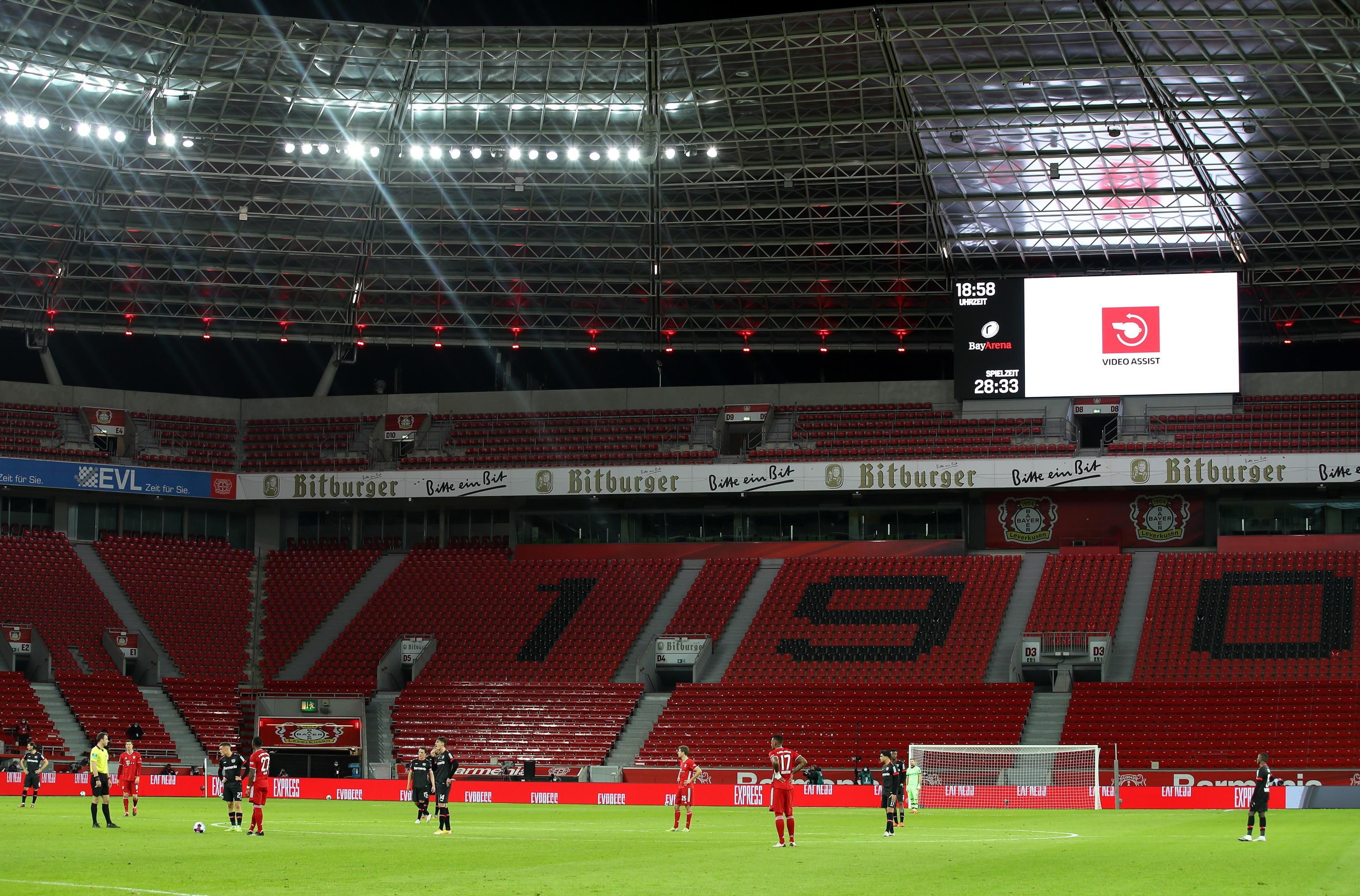 Il match a porte chiuse tra Bayer Leverkusen e Bayern Monaco del 19 dicembre 2020 alla BayArena di Leverkusen (Ansa)