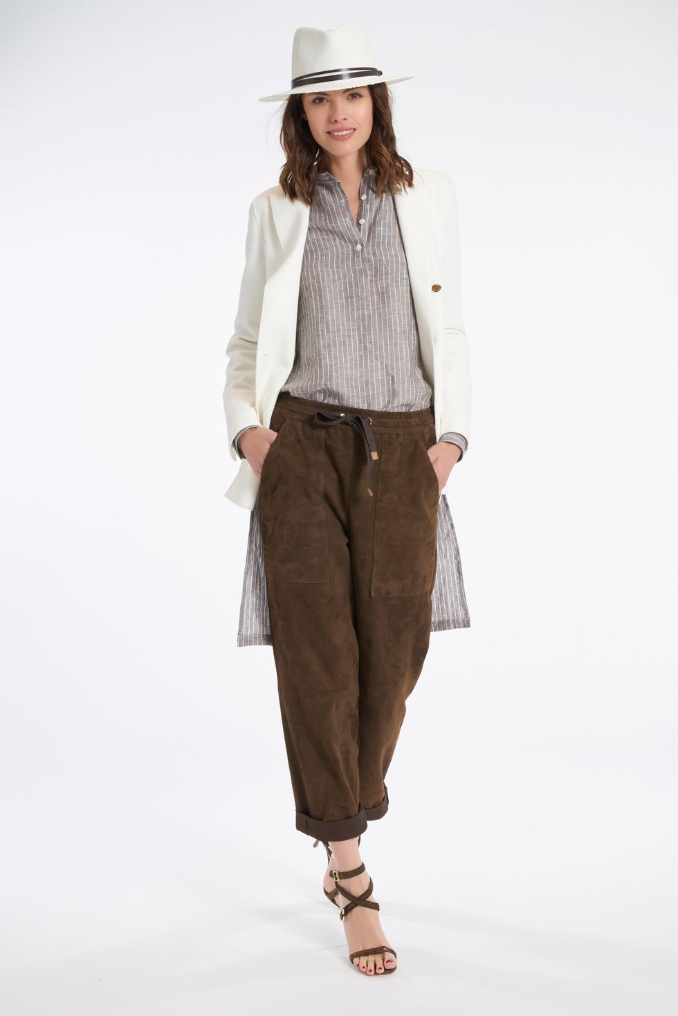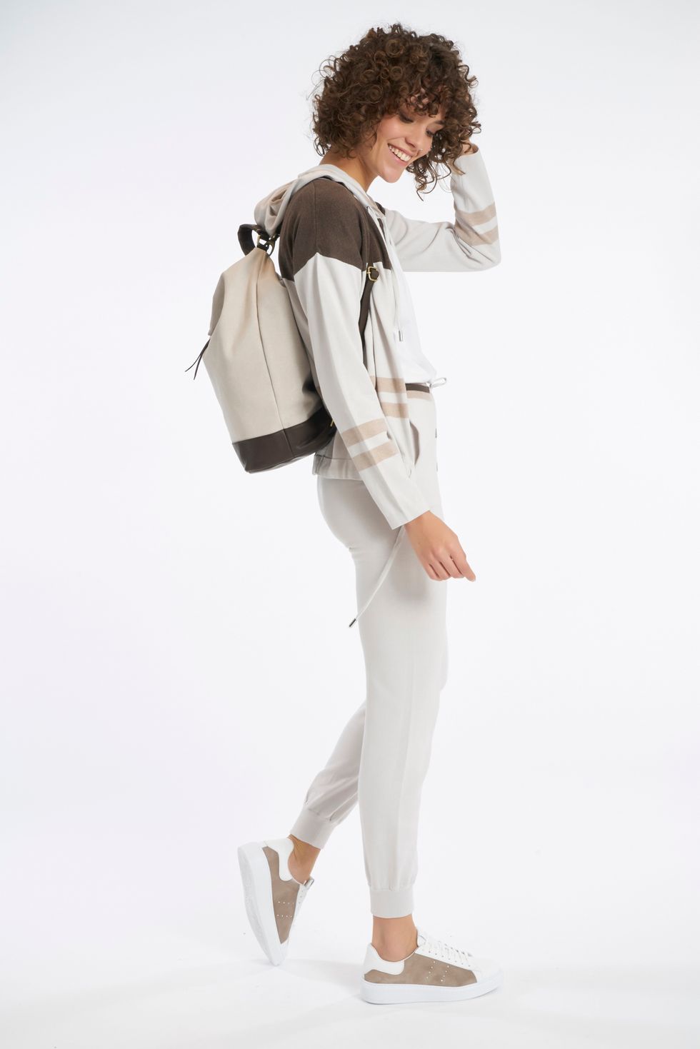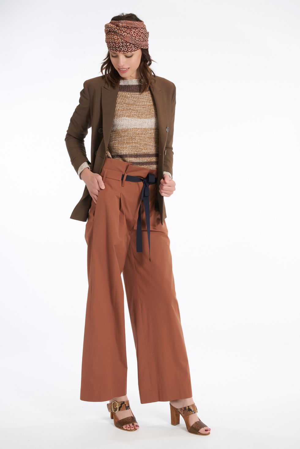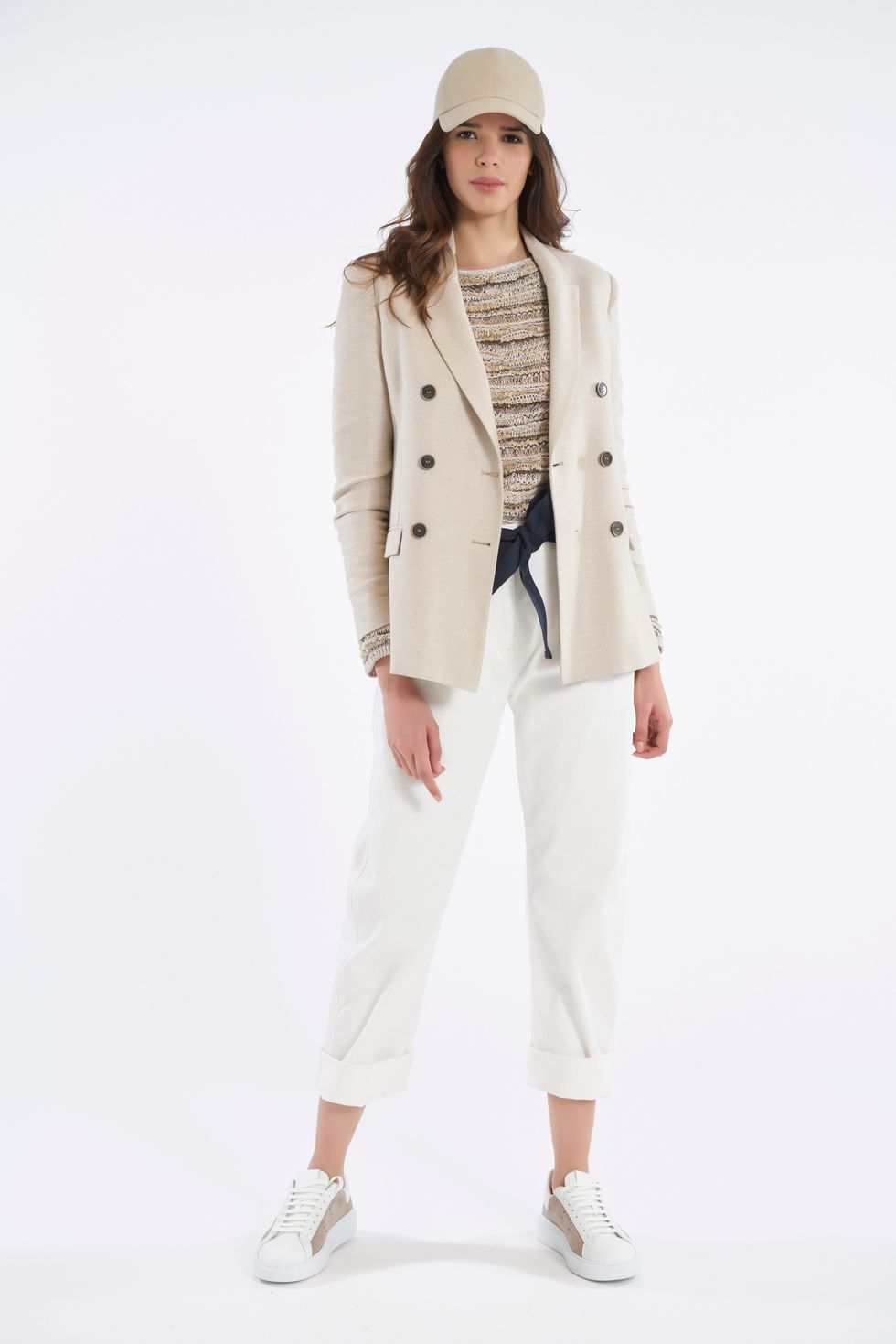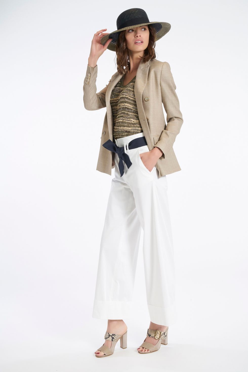 Look sofisticati e ricchi di un calore dato dalle tinte nei toni del bruciato, hanno la caratteristica di una profonda attenzione ai concetti di ecosostenibilità e di cura verso la natura, «un tema oggi troppo importante per essere disatteso». Leggerezza è una delle parole chiave di questa collezione capace di unire sete e satin impalpabili per gli abiti a tessuti più sostenuti usati per le impeccabili giacche di Eleventy che rimangono il must have del brand: monopetto e doppiopetto, con bottoni in metallo spazzolato oro che fanno risaltare i colori della terra, dei bruciati, dei bianchi e dei panna. Giacche multitasche dalle linee femminili garantiscono un tocco grintoso e raffinato.