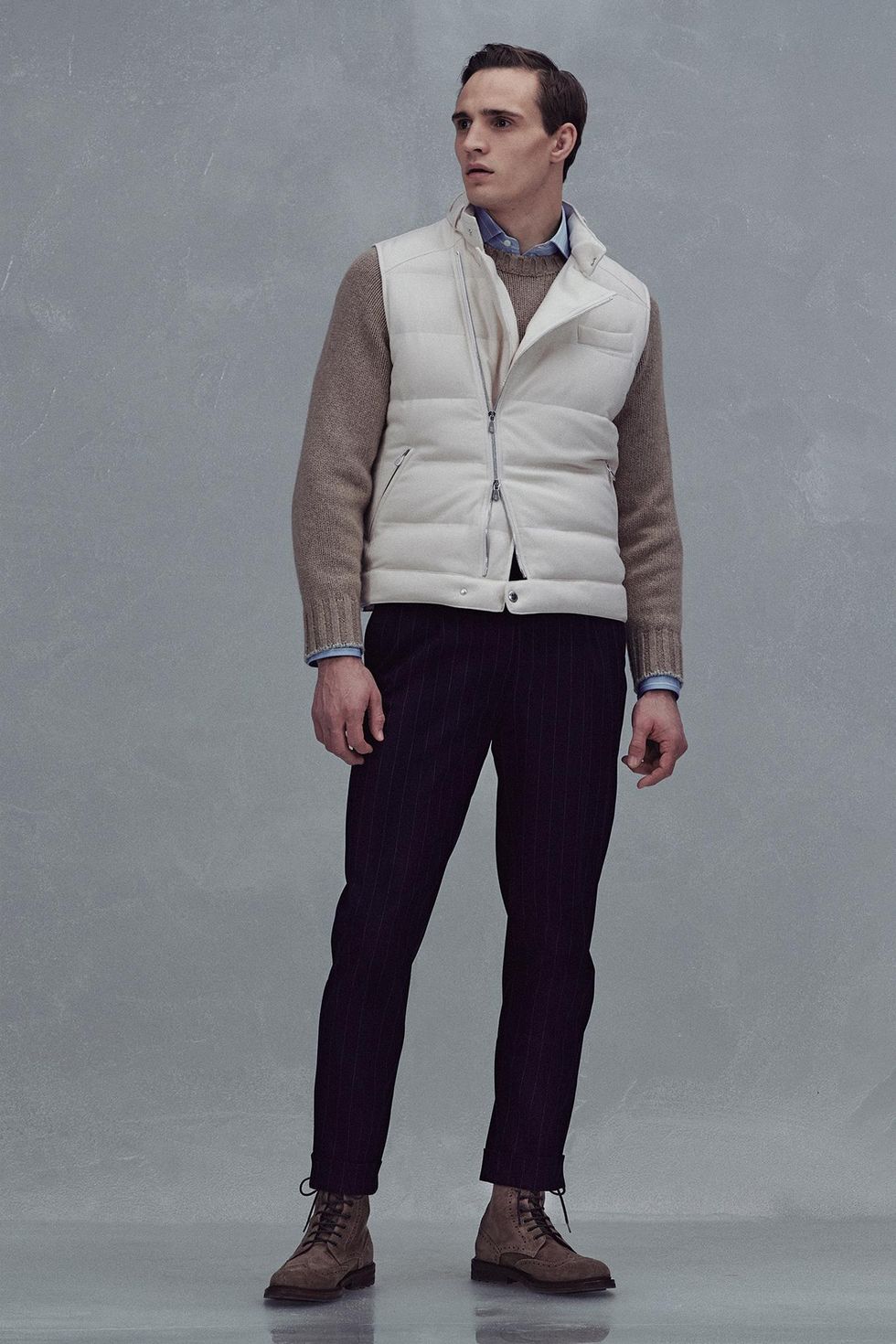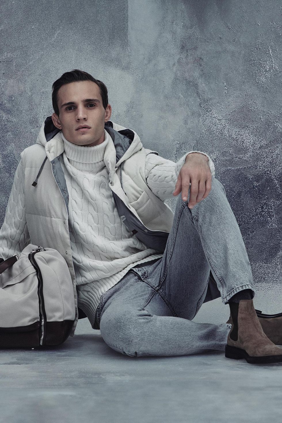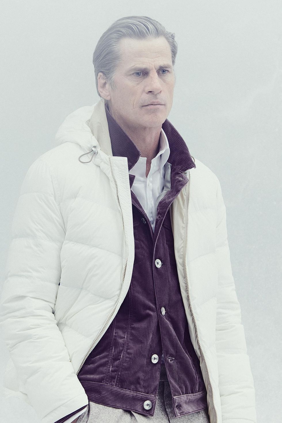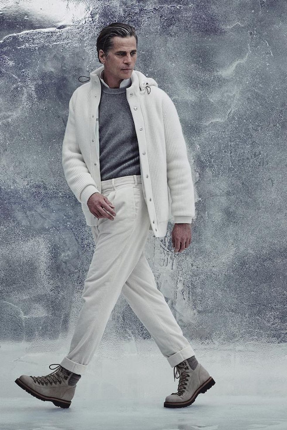 Fibre nobili e tessuti moderni sono al servizio del comfort, della morbidezza e soprattutto della leggerezza. Abiti e giacche sono in materiali preziosi dal gusto moderno e perfino i piumini sono spesso in cashmere. Lo spirito di Brunello Cucinelli è sempre al positivo. «Sono anche convinto che quando finirà la pandemia andrò al ristorante sette giorni su sette.Vorremo tutti vestirci bene e accarezzare di nuovo i tessuti. Quando si entrerà nei nostri store, gli addetti dovranno essere amichevoli, gentili e avere buone maniere. Basta con la superficialità, con le trovate a effetto, con l'esibizione fine a se stessa: se c'è una lezione che il 2020 ci ha insegnato è che non abbiamo né il tempo, né la voglia e né i mezzi per dare retta a ciò che è inutile. Mi pare un bel punto da cui ripartire».